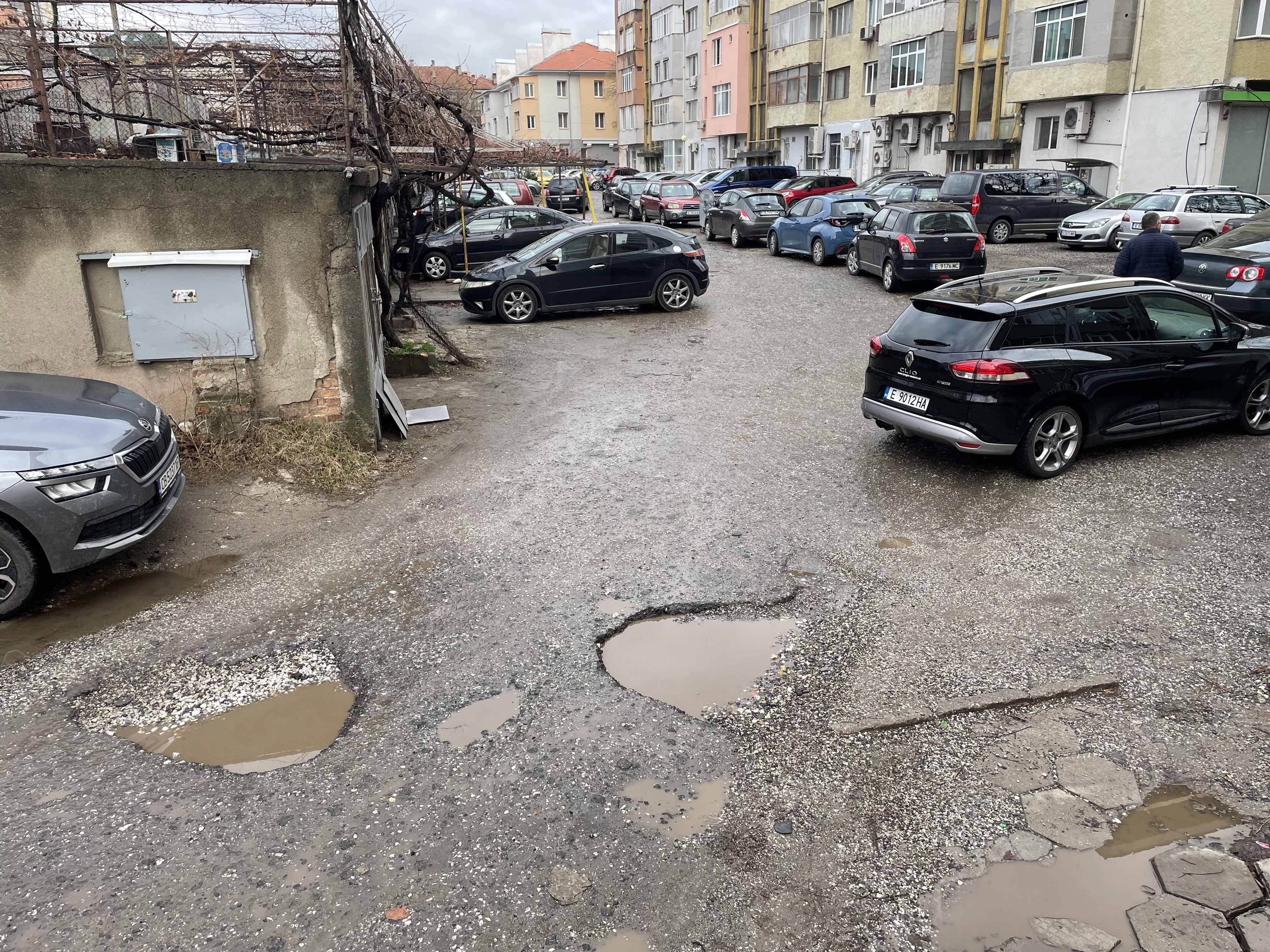 Моля за Вашето съдействие чрез компетентните органи, общинският имот и подходът към него да се приведат в нормално състояние, да се асфалтират, а паркирането да се регулира от общинските власти.
