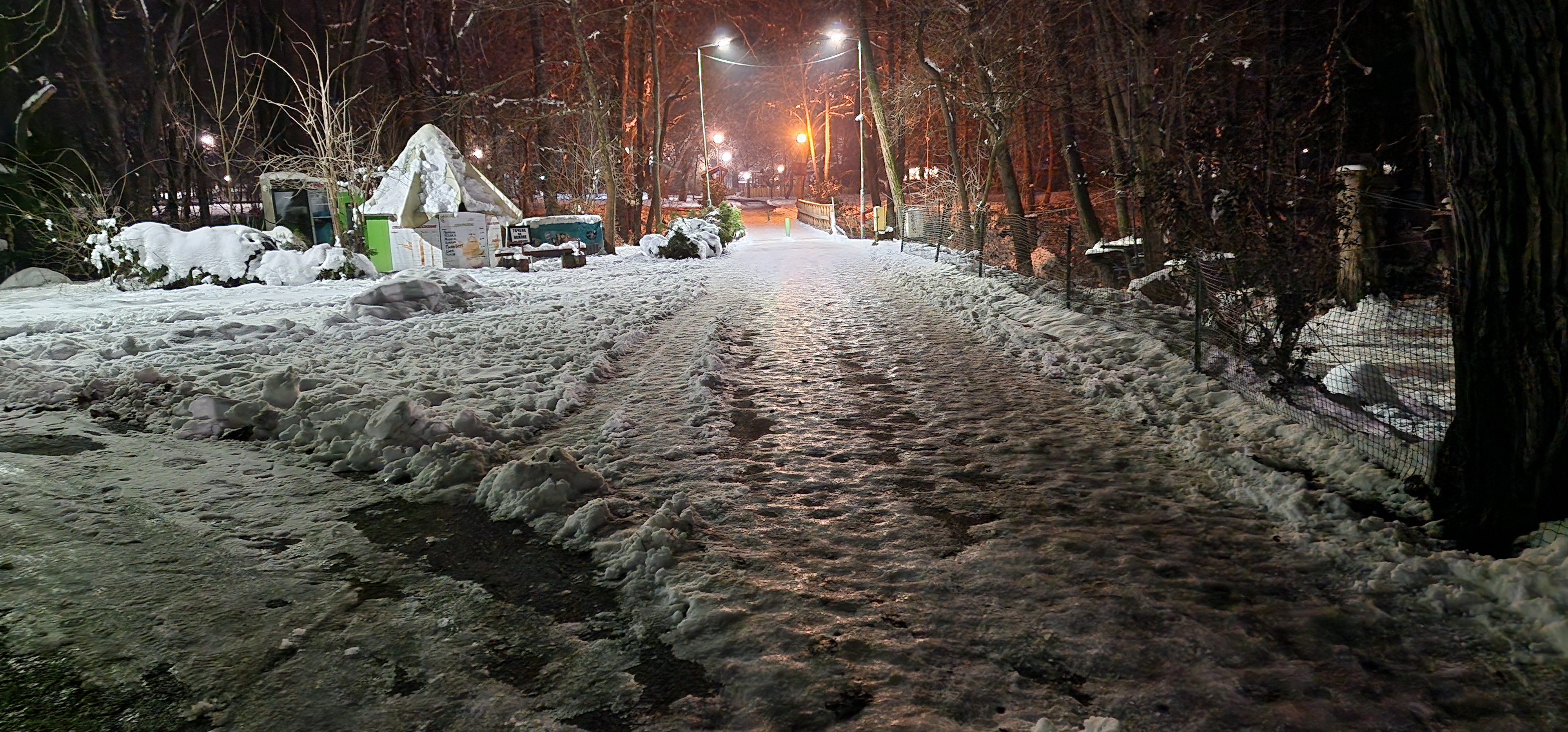 Опасно за пешеходци! Преди моста от страната на обръщателното колело на влакчето има много лед.