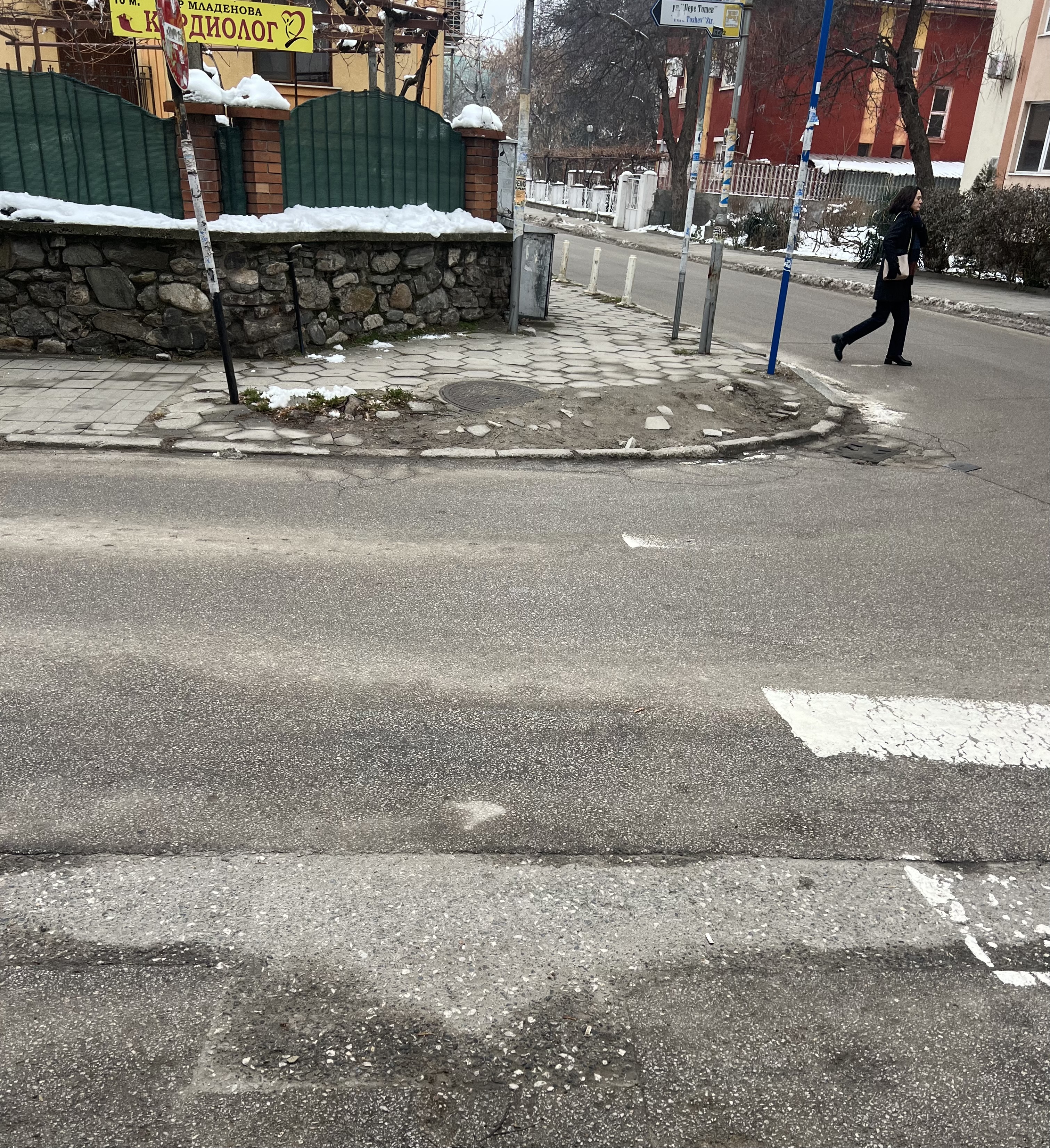 Счупени и липсващи плочки от тротоара.