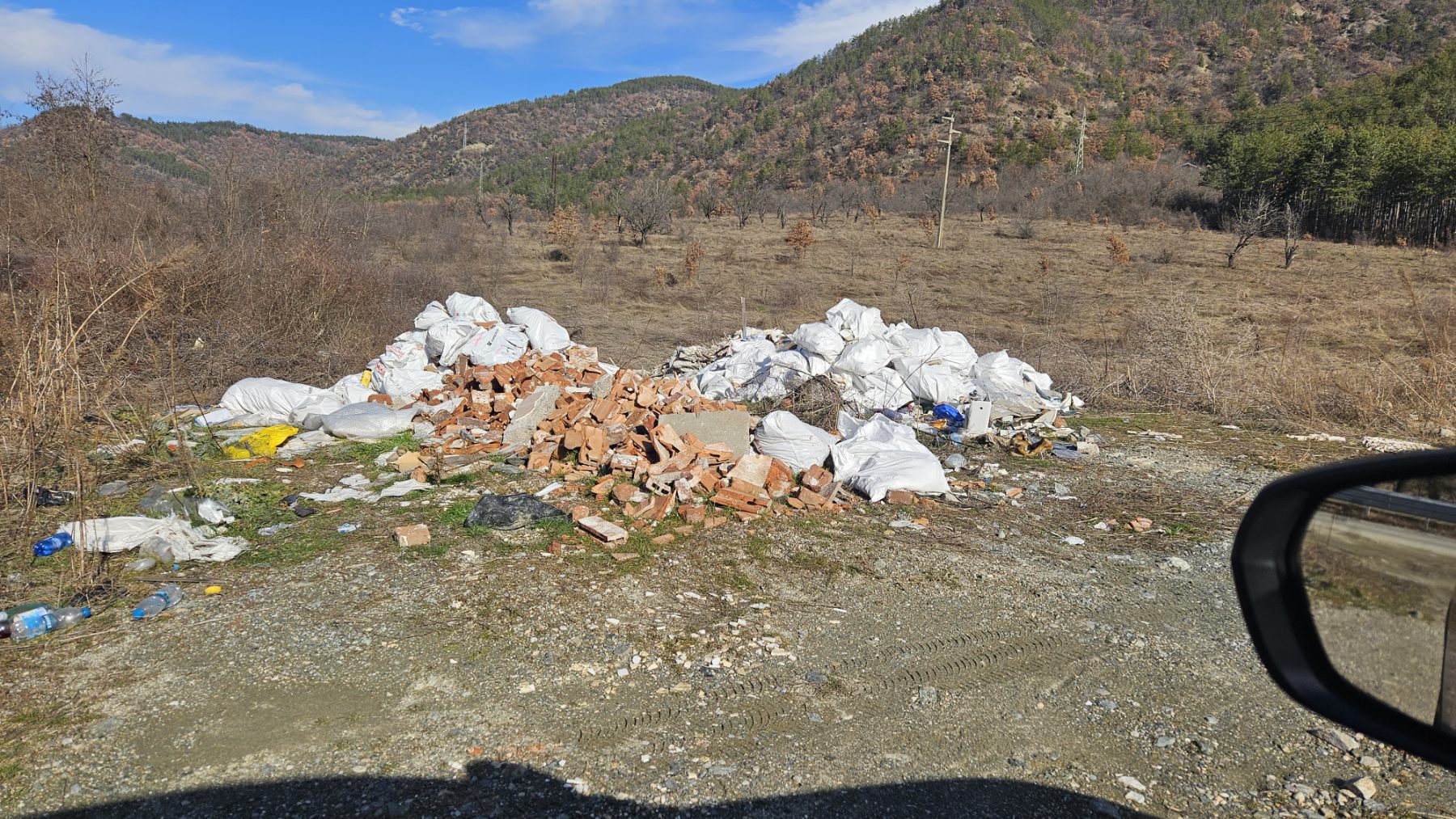 Изхвърлени строителни отпадъци. На същия път има още едно място, където са изхвърлени отпадъци.