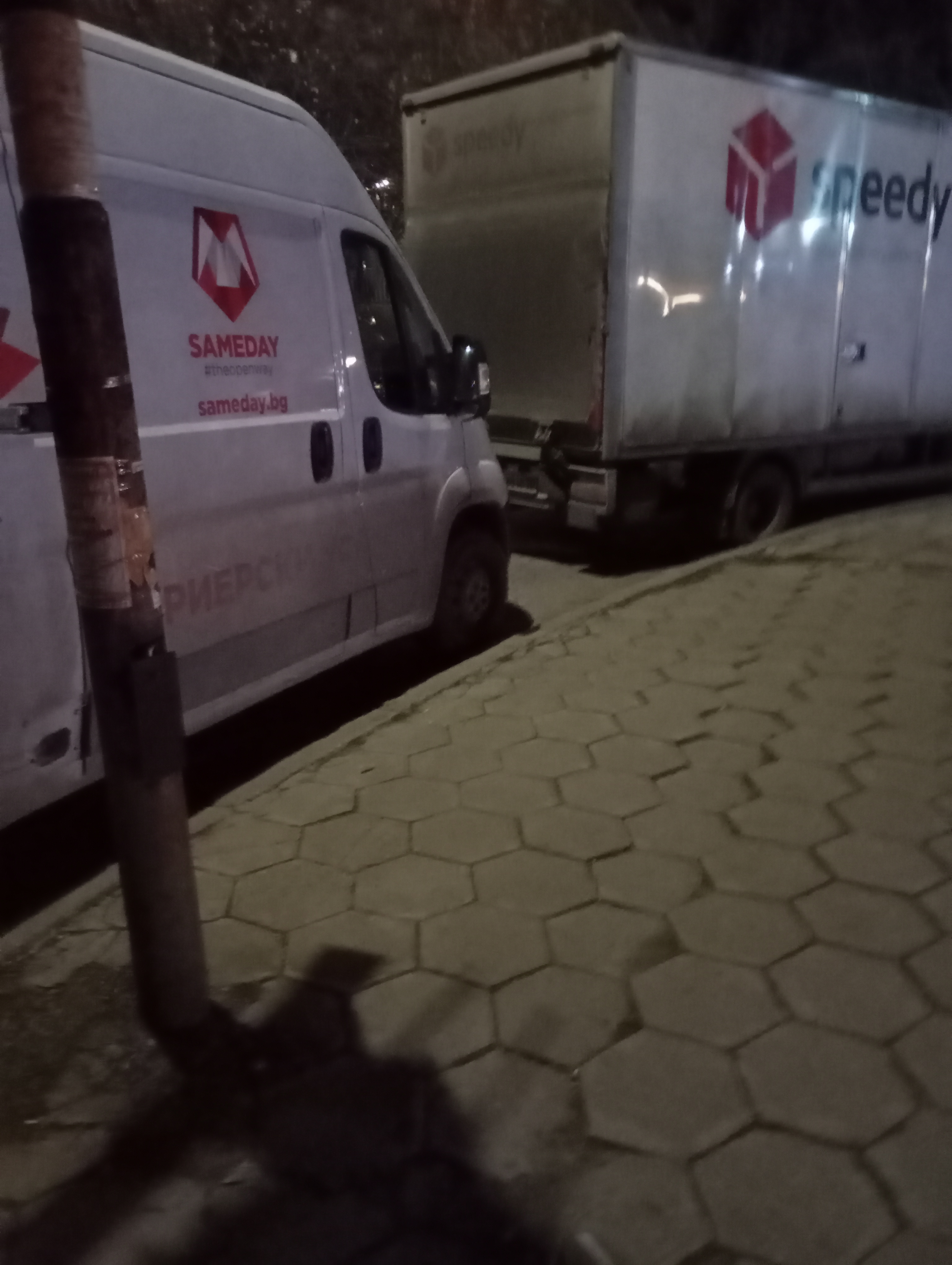 Тези два автомобила паркират всяка вечер на завоя и пречат на движението. От другата страна не се вижда нищо. И двата автомобила са на фирми и това се случва всеки ден. Моля да бъдат предприети мерки.