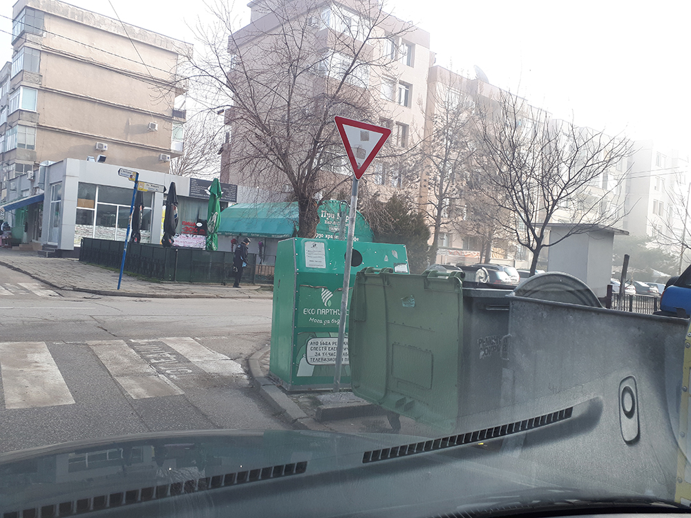 Инфраструктурата в района не позволява преместването на контейнера за разделно събиране на стъкло. Поставен е преди пешеходнта пътека на място на равнение с мрежата, без да ограничава движението на пешеходците.