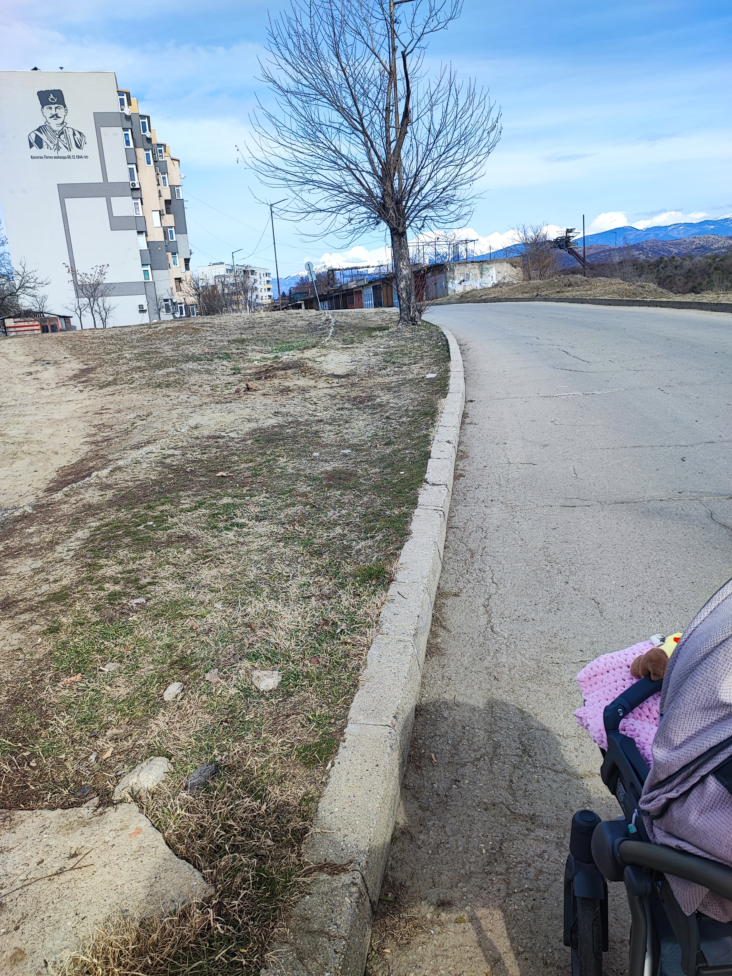 От години на това място липсват тротоари и от двете страни на улицата. Естествено, прави ми впечатление всеки ден, откакто имам дете. Неприятно е да вървим по улицата и да ни свиркат коли при положение, че няма тротоар на който реално да се качим. Ще могат ли да бъдат взети някакви мерки?