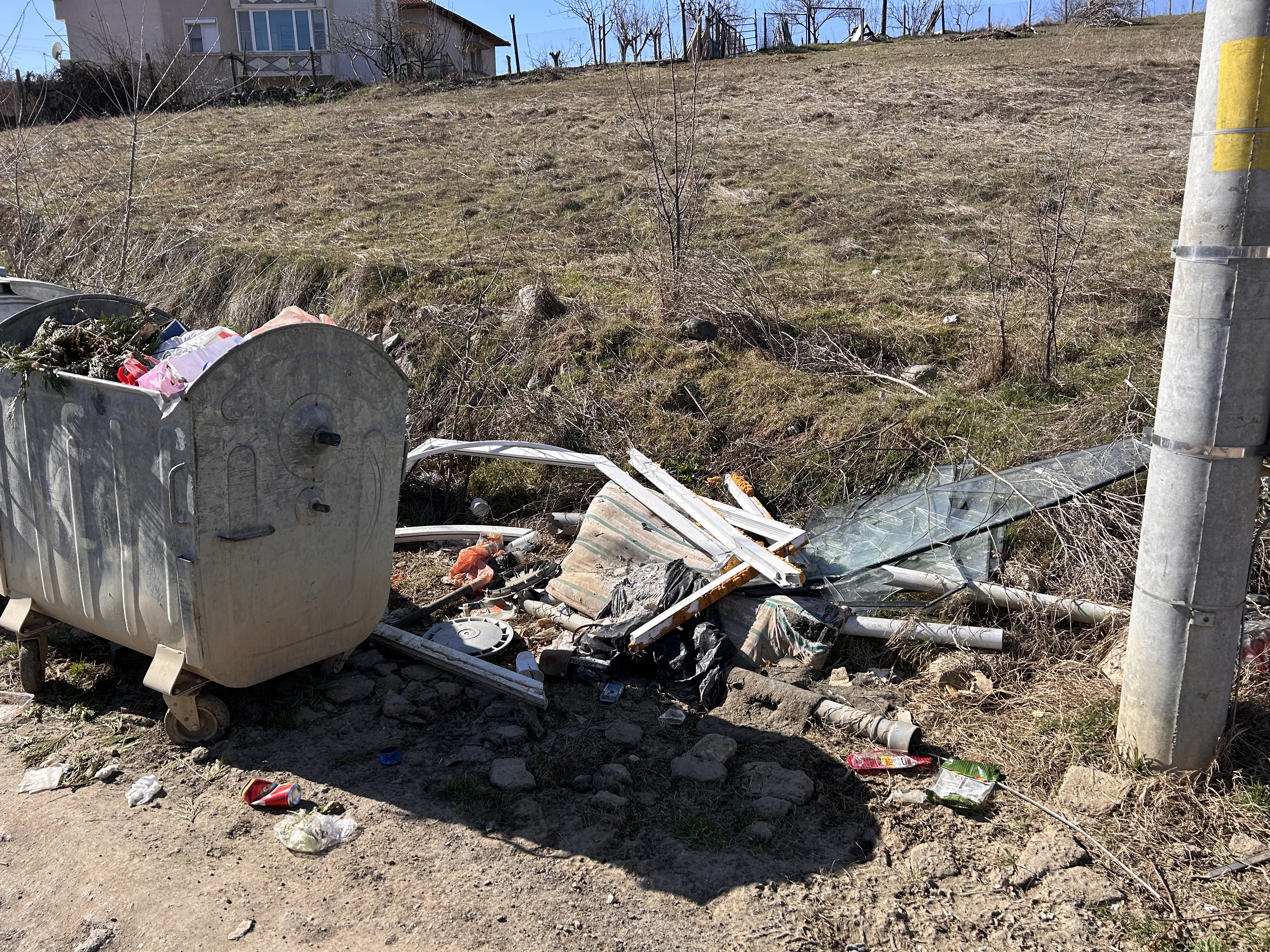 Около контейнерите на адрес: с. Изгрев, ул. „ Братя Гошеви“ № 15 има изоставен боклук /стари дограми е др./, който не се извозва от доста време. Моля да бъде събран и извозен.