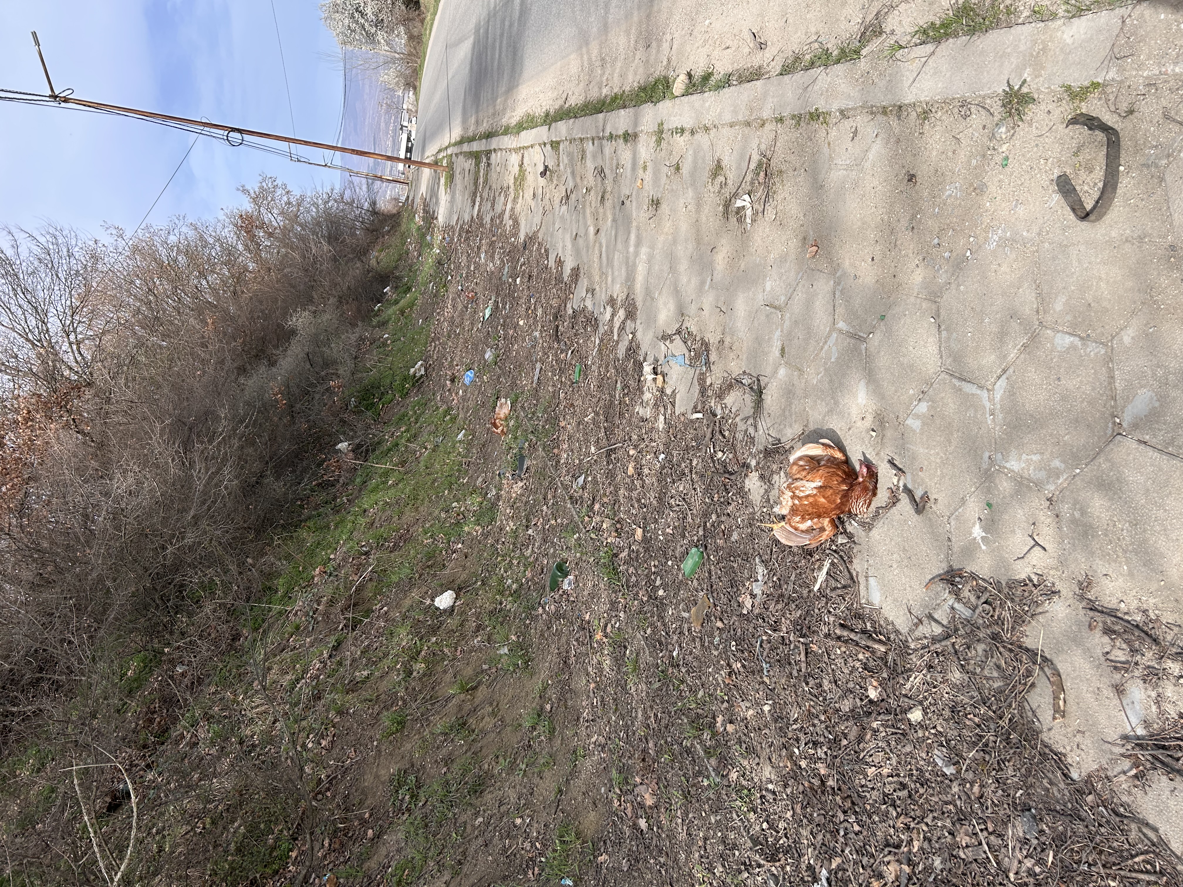 На влизане в с. Изгрев на тротоара на главния път има две мъртви кокошки. По мое наблюдение от около седмица.