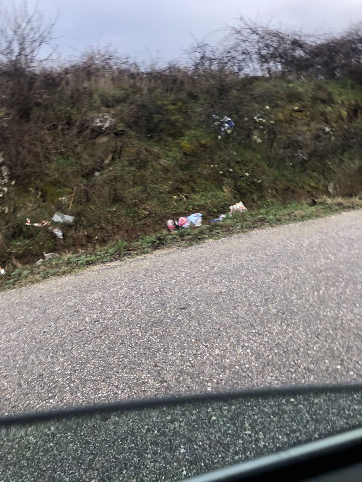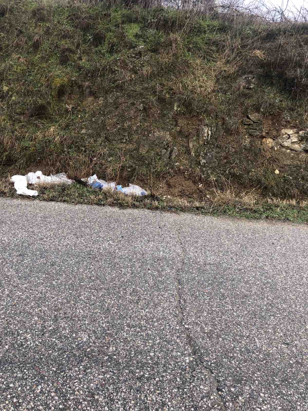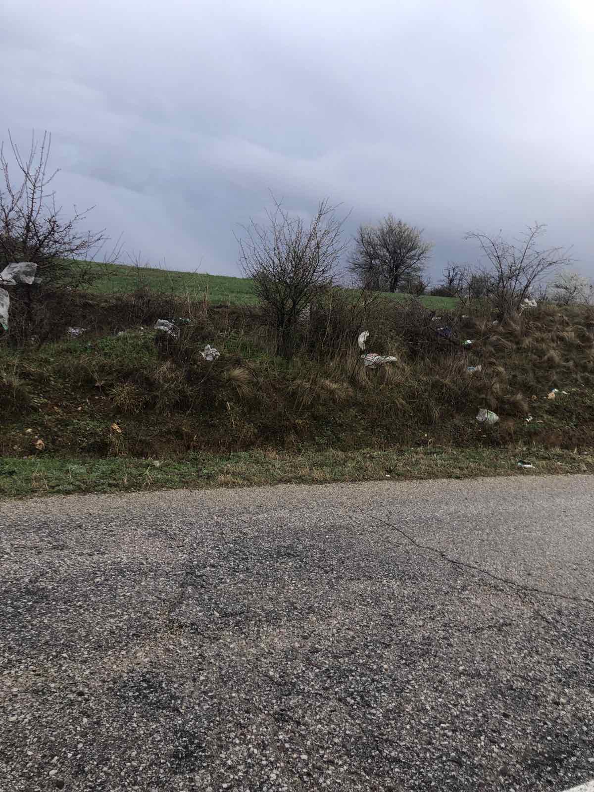 Здравейте, от няколко дни от бунището заради вятър са се разпръснали огромен брой найлонови торбички по пътя до Бучино! Прикачам снимки с малка част