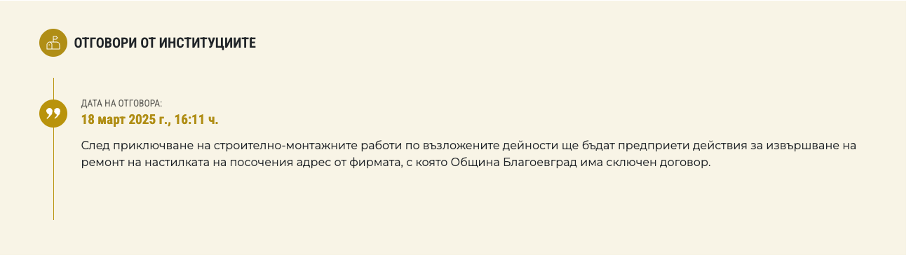 Изпратен е писмен отговор за отстраняване на проблема.
