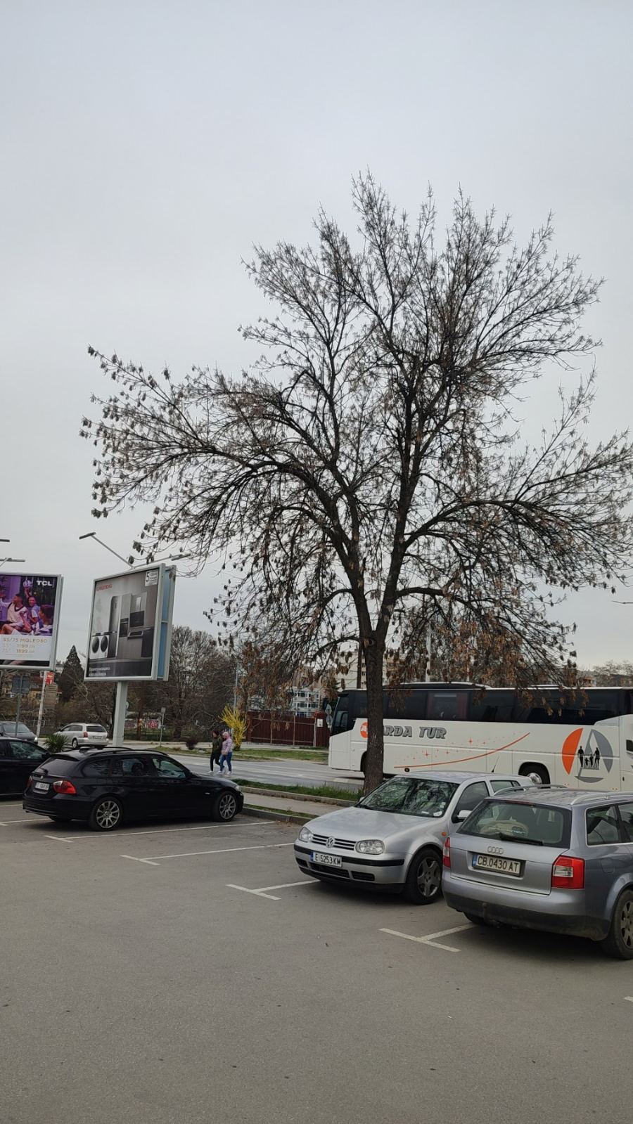 Здравейте, има опасно дърво до паркинга на магазин Технополис, върху пешеходната алея. има вече няколко счупвания и падане на клони, добре че нямаше минувачи.