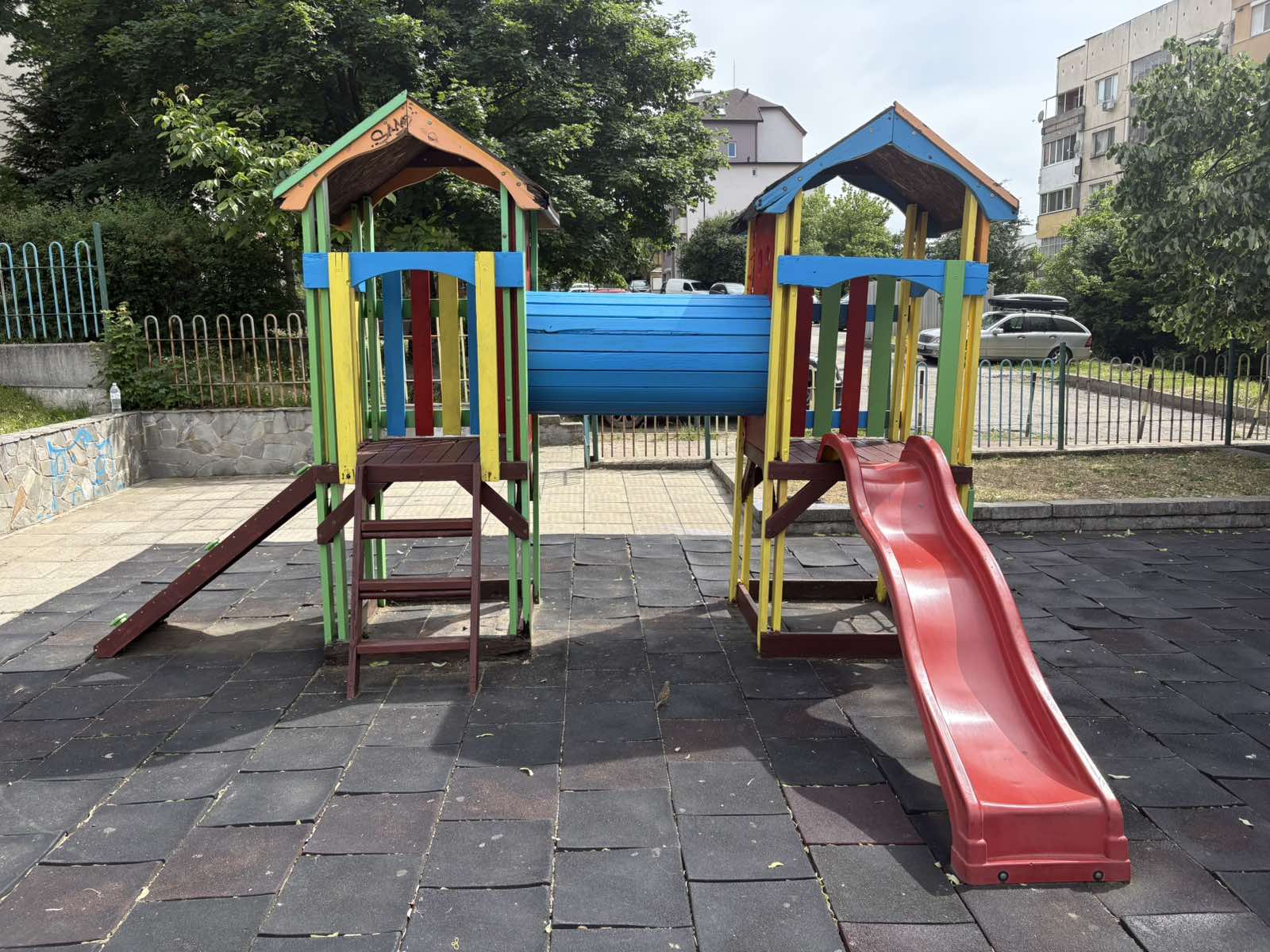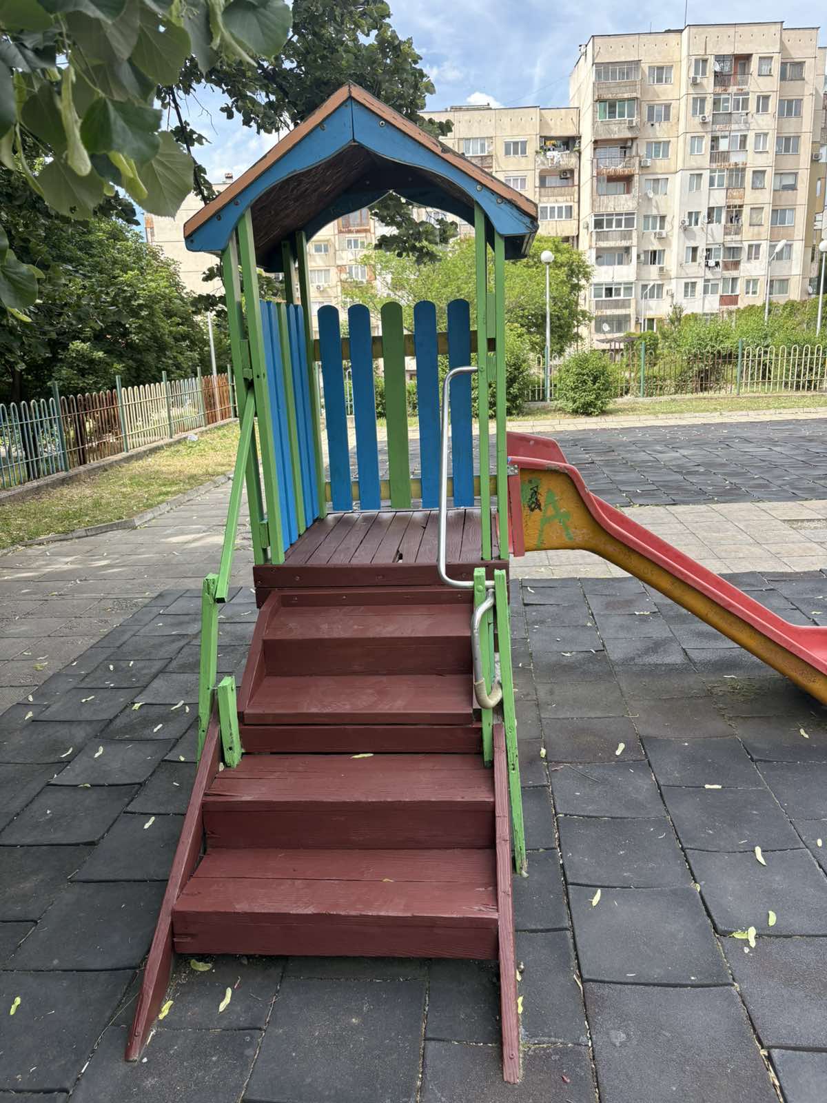 Една от най- посещаваните детски площадки е в окаяно състояние. Гумените плочки са огънати, децата се спъват и падат, а. А места дори липсват. Гредите на люлките са изгнили, а самите люлки счупени. Има много счупени даски на пързалките. Пясъчникът е основно котешка тоалетна обрасъл с трева. Приложено изпращам снимки.