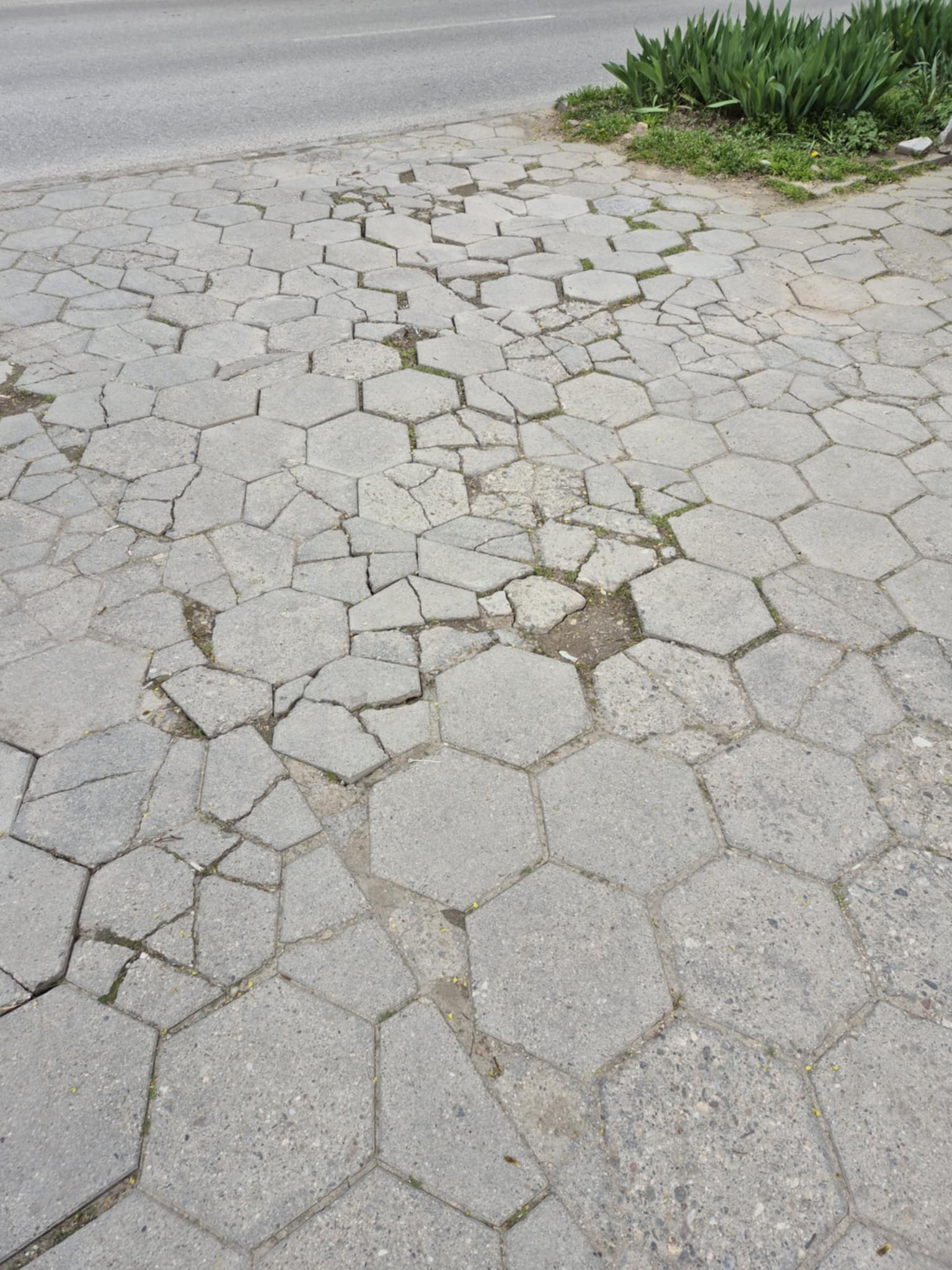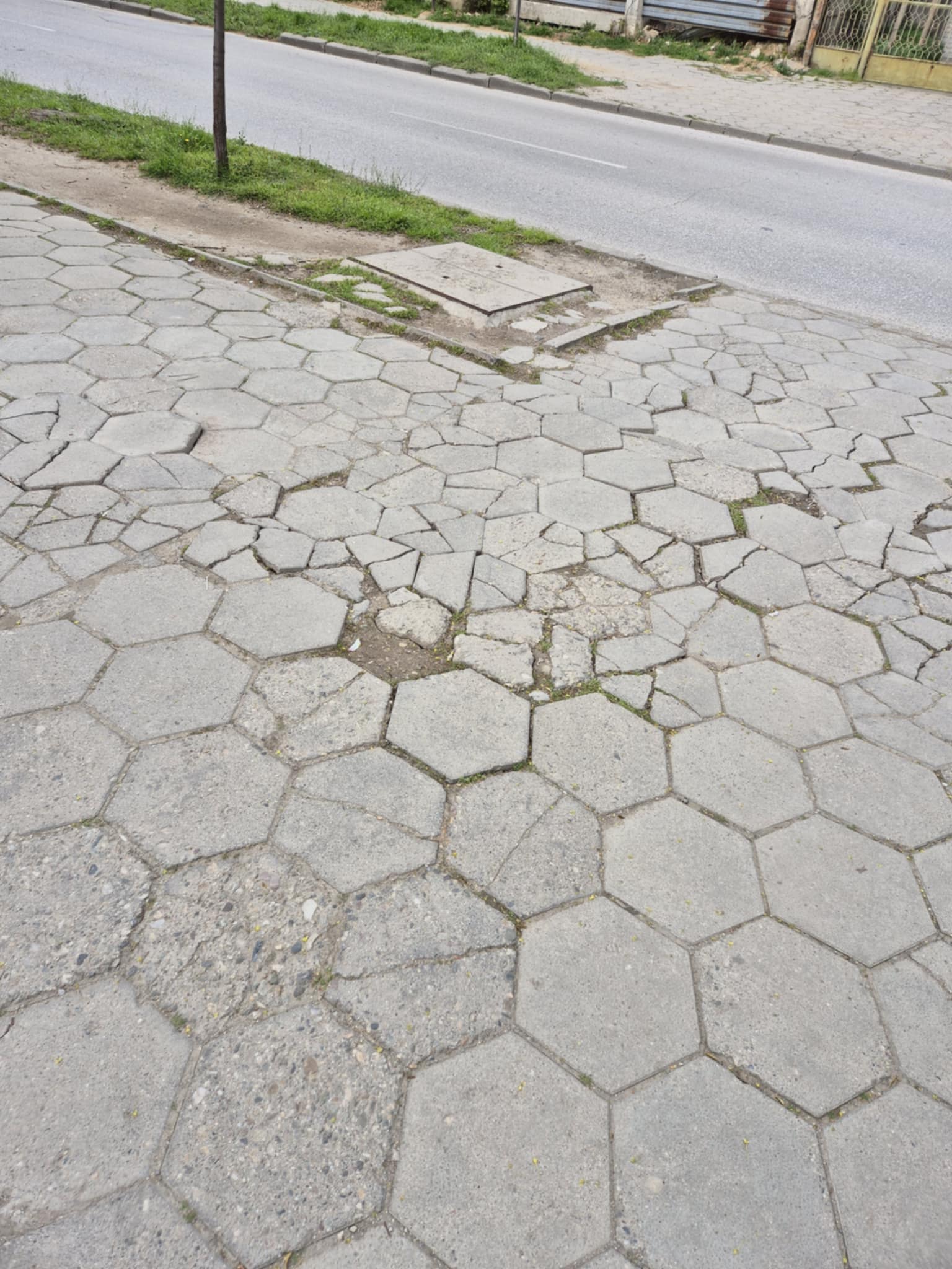 На ул. Илинден 22 тротоарът е разбит и плочките са в окаяно състояние. Моля, общината да ги отремонтира.