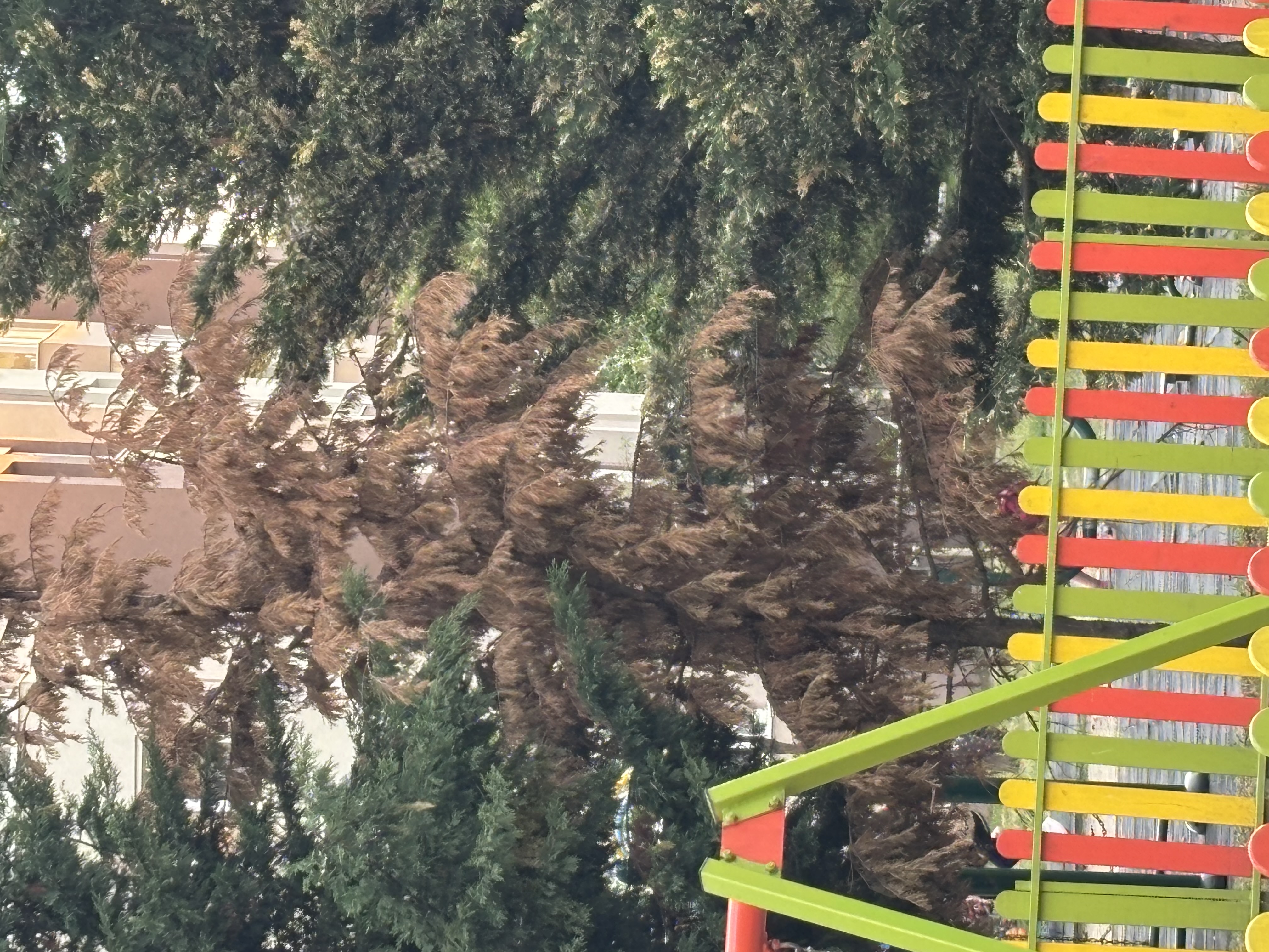 На детската площадка зад бензиностанция Варко има изсъхнали дървета. Моля да подкастрите и другите около тях в долната част на короната, за да имат родителите видимост над по-голямата част от площадката.