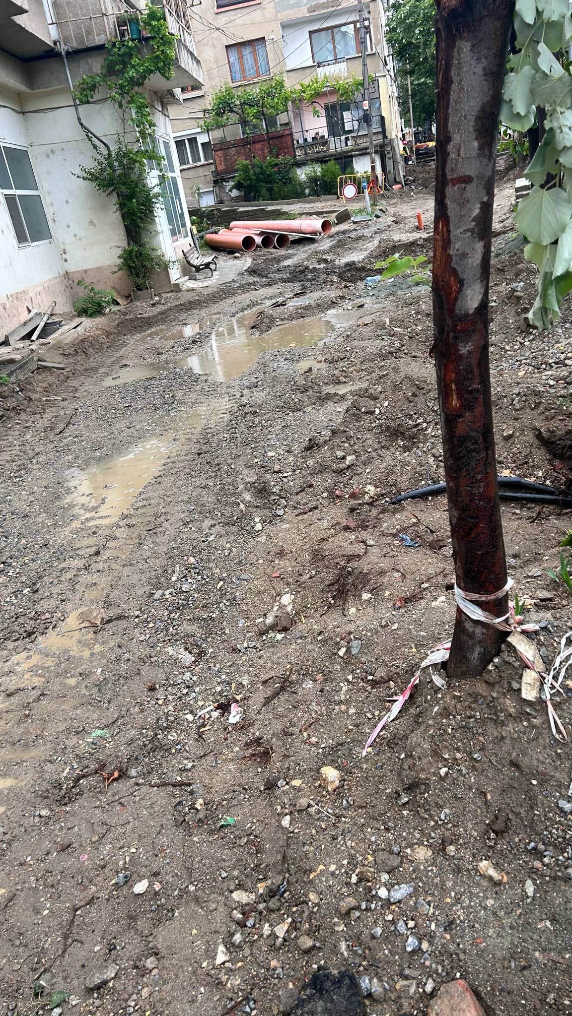 Това е от е от 8 месеца ежедневието на майките с деца, които са потребители на млечна кухня № 2 и живеещите на ул. „Стефан Стамболов“ и ул.„Стефан Каражда“. Фирма „КОМУНАЛ“ ООД, извършва ремонт от 8 месеца на площ от 200 метра на ул. ул. „Стефан Стамболов“. Ежедневно когато минавам от там, разговарям със служителите на КОМУНАЛ да помислят за майките с деца и живущите и да осигурят преминаване временно с дъски или каквото преценят, т.к през локвите и калта е невъзможно, но всеки вдига рамене и казват че не е това работата им. Моля, с оглед прогнозата за дъждове , да съдействате за осигуряване на достъп но млечната кухня и до домовете ни.