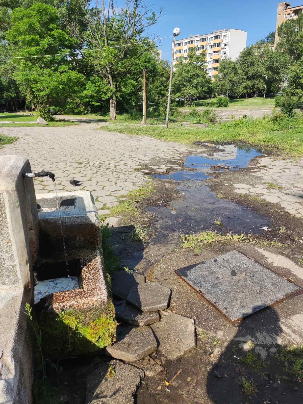 Поради възникнал теч и липса на възможност за отводняване, отчитането на водомера в чешмичката при заведение 'Рай' е невъзможно. Моля за съдействие.