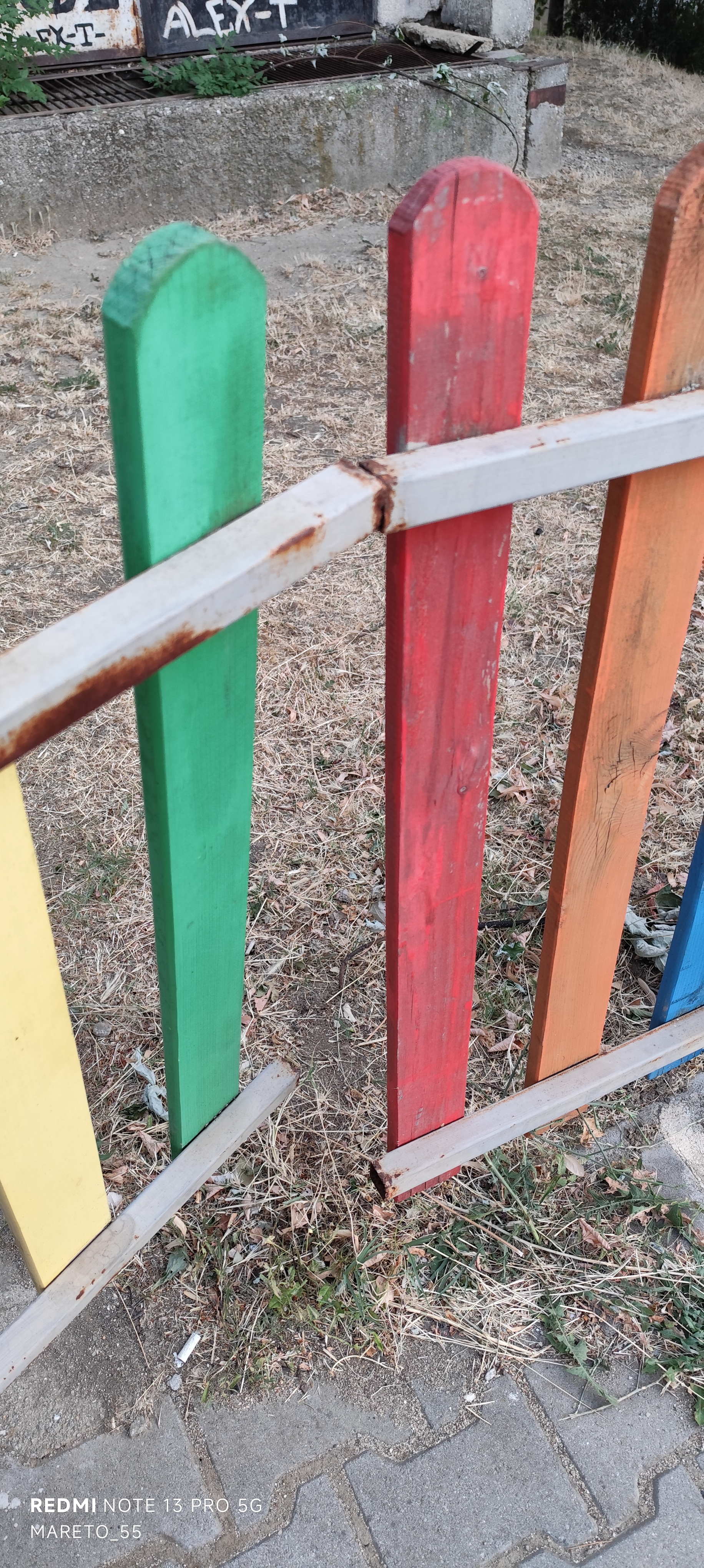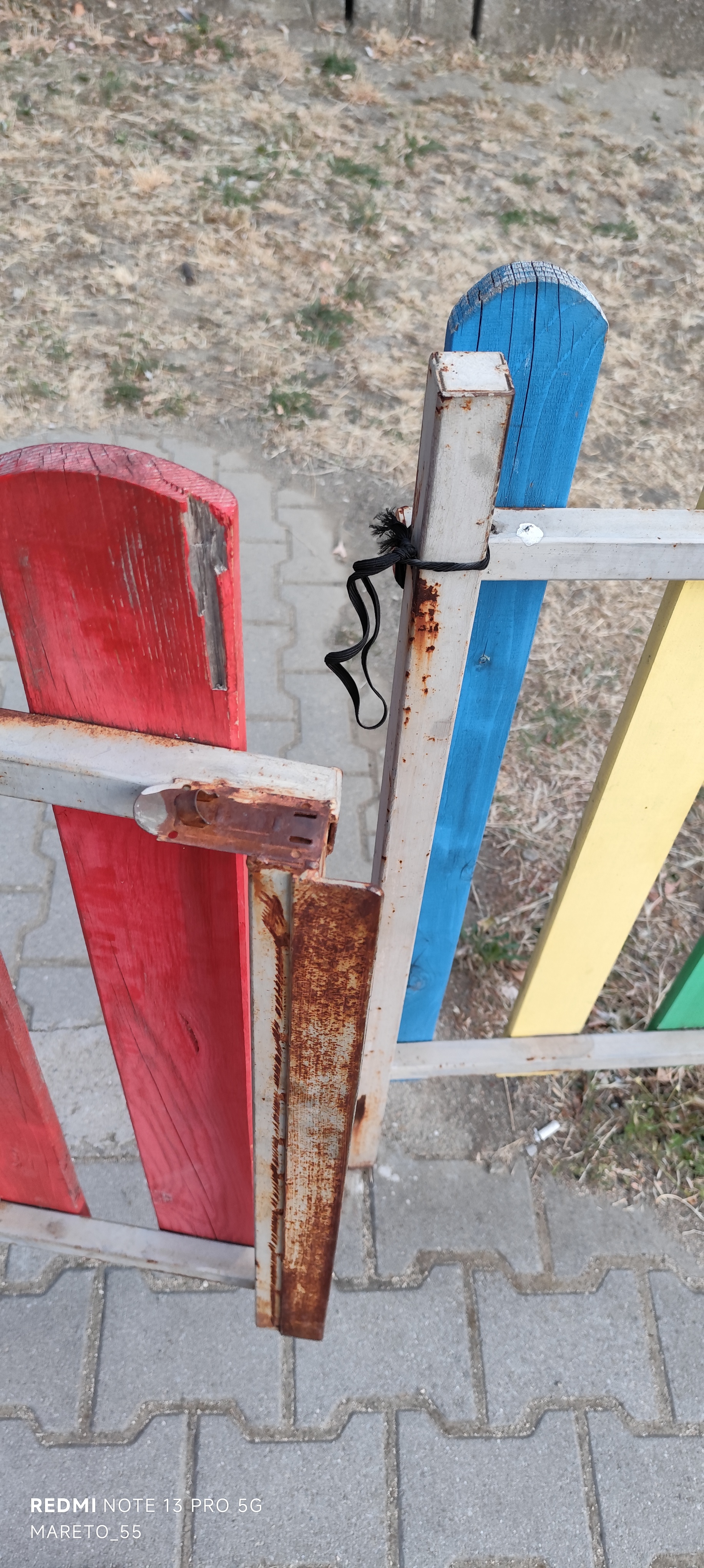 Повредена ограда, вратичка и клатещо се съоражение (пързалка) на детска площадка под ул.Броди 40