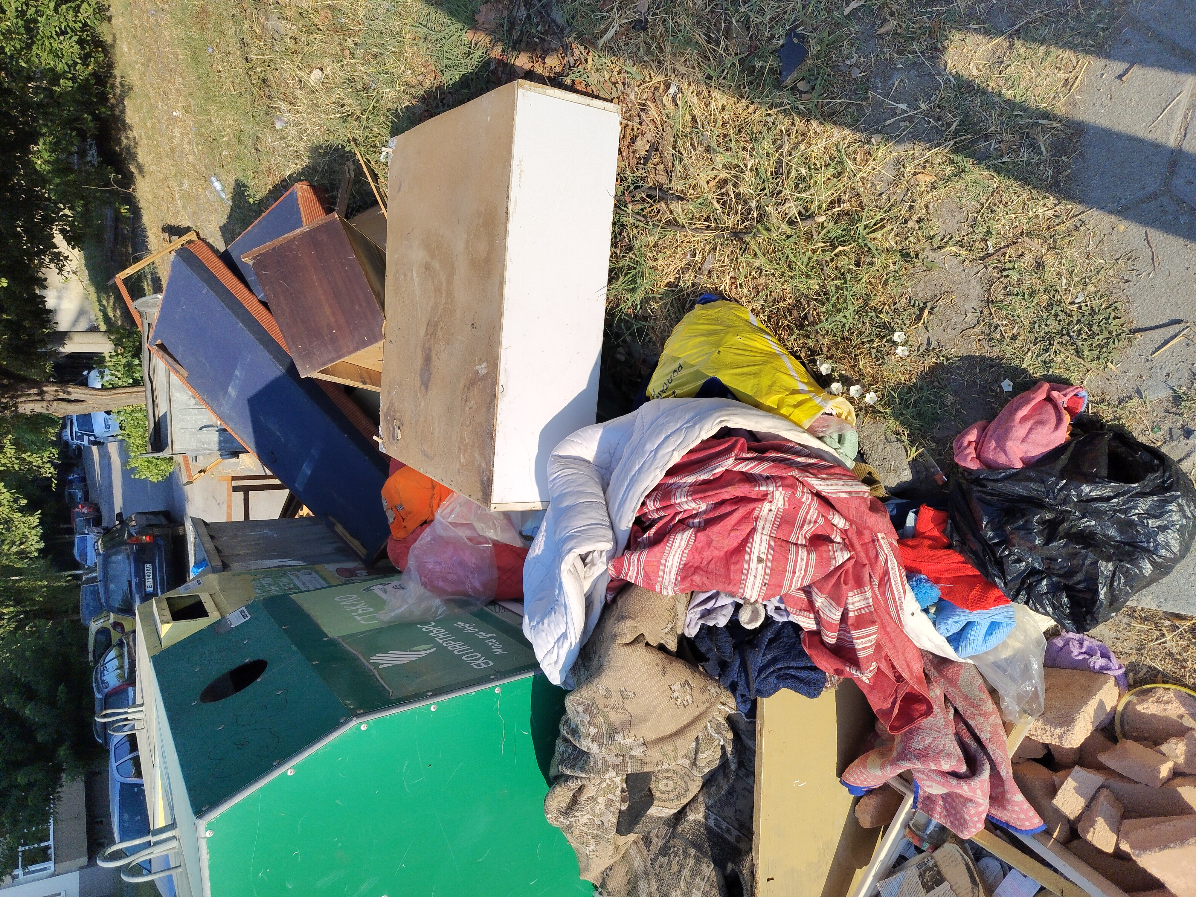 За пореден път около контейнерите за смет има изхвърлени отпадъци от рода на матраци, легла, столове, шкафове. Вземете мерки за почистването и може би трябва да се поставят информационни табела къде и как се изхвърлят този вид отпадъци или камери. Най-вероятно ги изхвърлят нощно време.