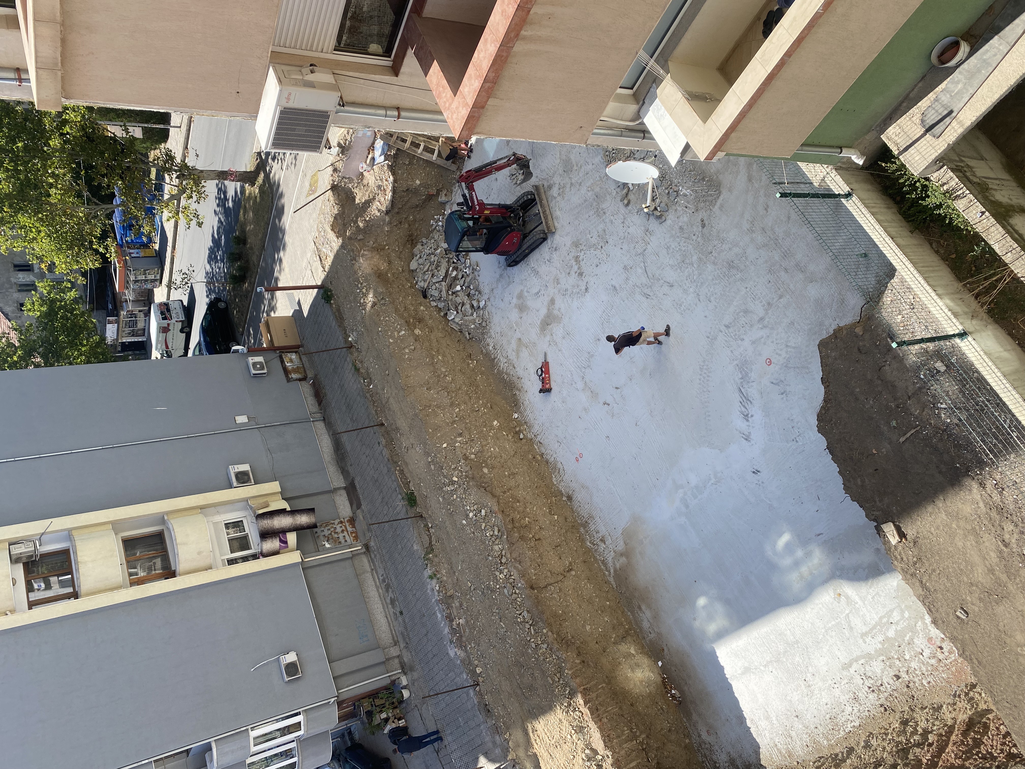 Новостроящата сграда на бул. Васил Левски. Не се спазват часовете за почивка между 14:00 - 16:00.