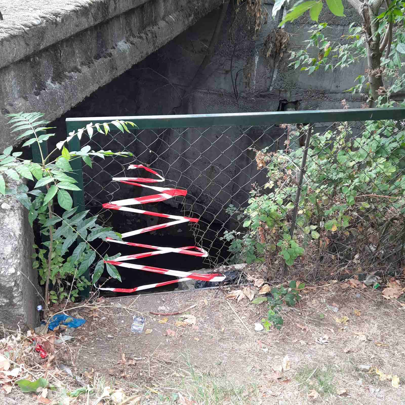 На детската площадка зад бензиностанция Всеки има канал,при входа липсва ограда,доста е високо и опасно.