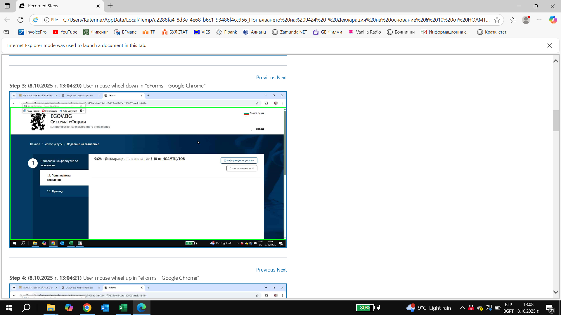 Попълването и подаване на 9424 - Декларация на основание § 10 от НОАМТЦУТОБ чрез E-GOV не работи. Опитах няколко пъти, но нищо не се зарежда - страницата е празна.