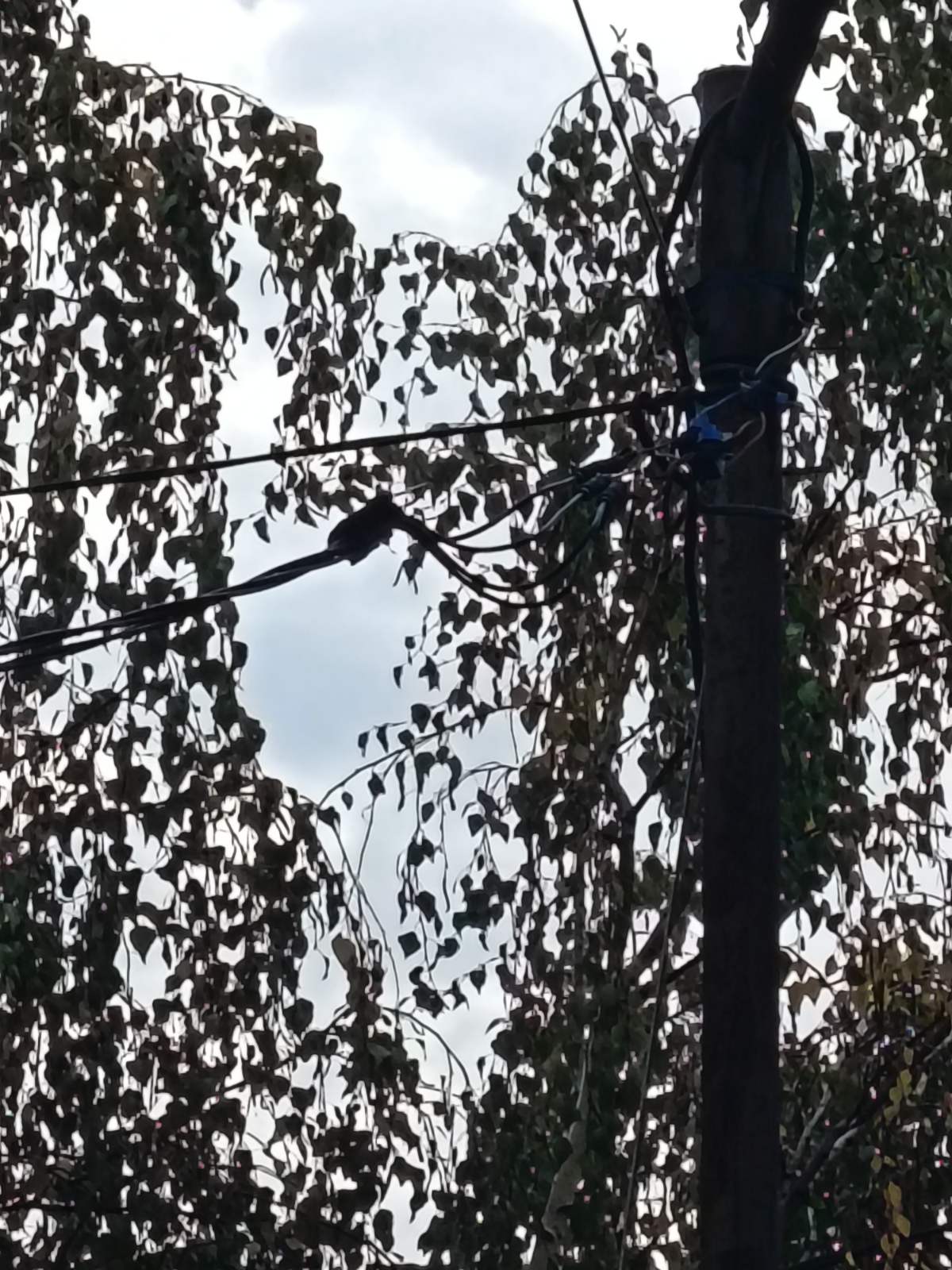 На кръстовището, от държача на стълба са провиснали кабели. Възможно е да дадат на късо и да стане авария.