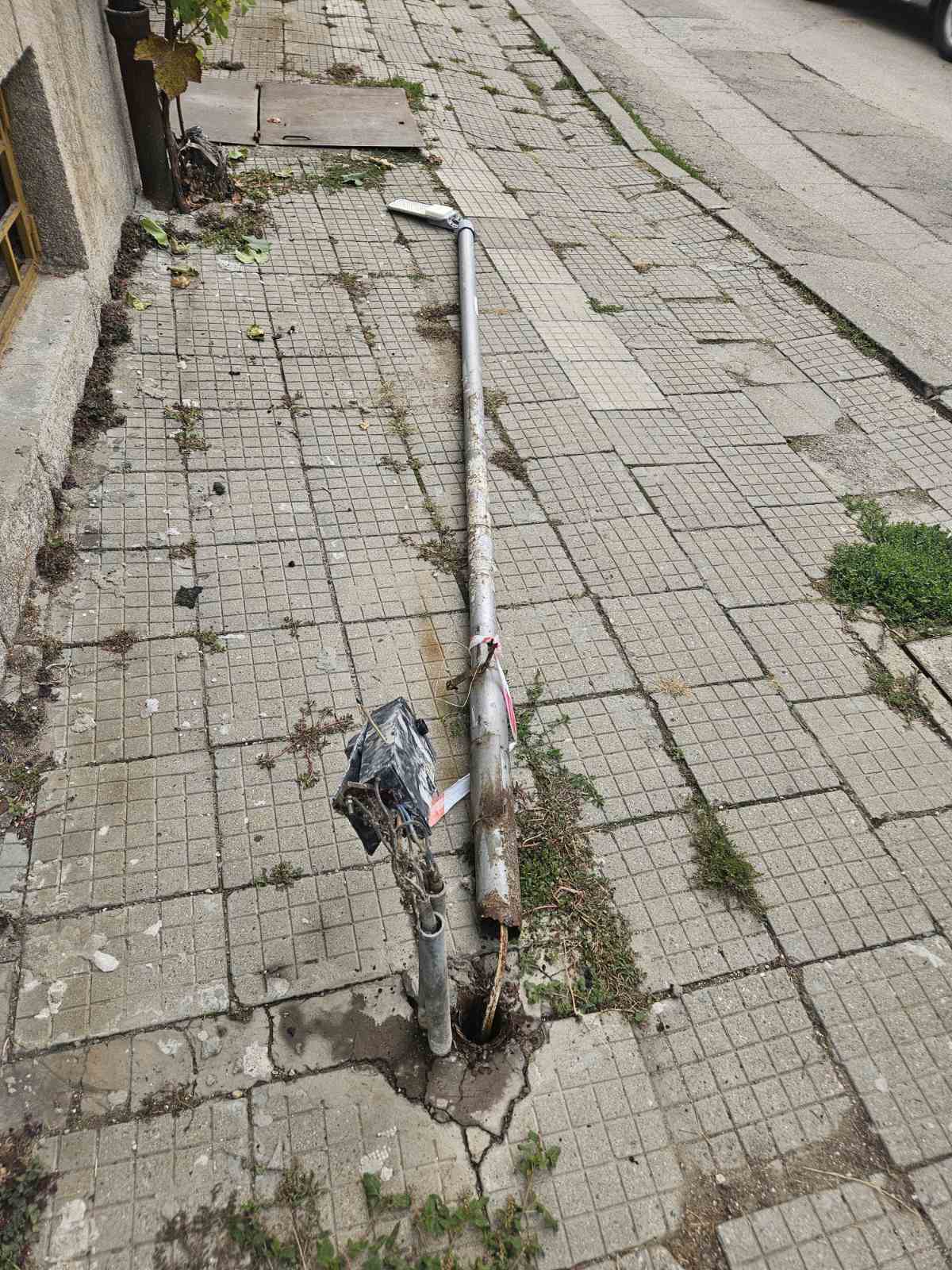 Извършена е проверка от служители на звено „Инспекторат“ към Община Благоевград. По време на проверката е установен паднал стълб направен е и снимков материал. Сигнала е насочен към „Био Строй“ за отреагиране по компетенция.