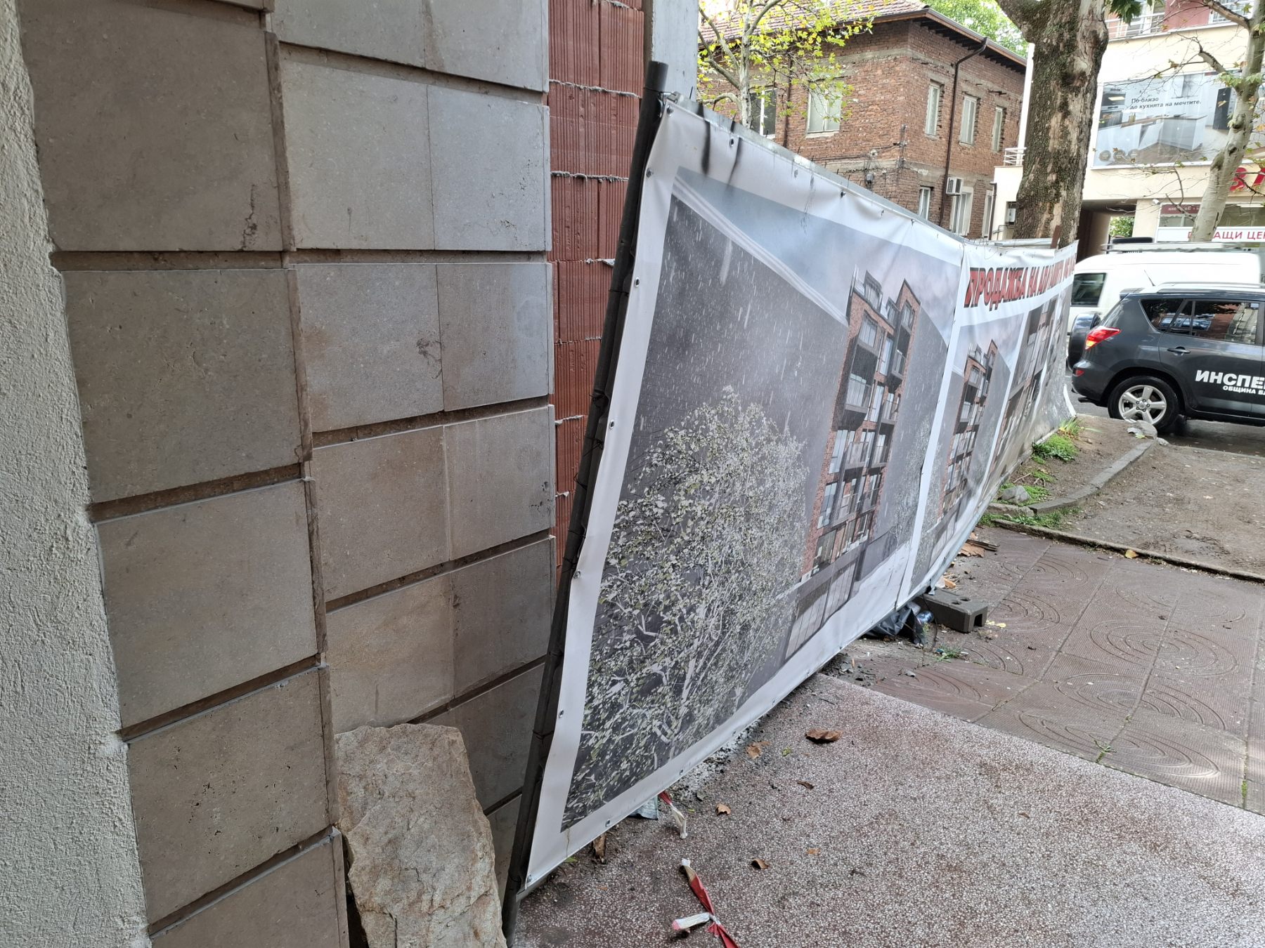 Служители от звено „Инспекторат“ към Община Благоевград извършиха проверка на място. По време на инспекцията беше установено, че оградата, поставена пред строителния обект, е наклонена и при влошаване на метеорологичните условия би могла да създаде потенциална опасност за преминаващите граждани.