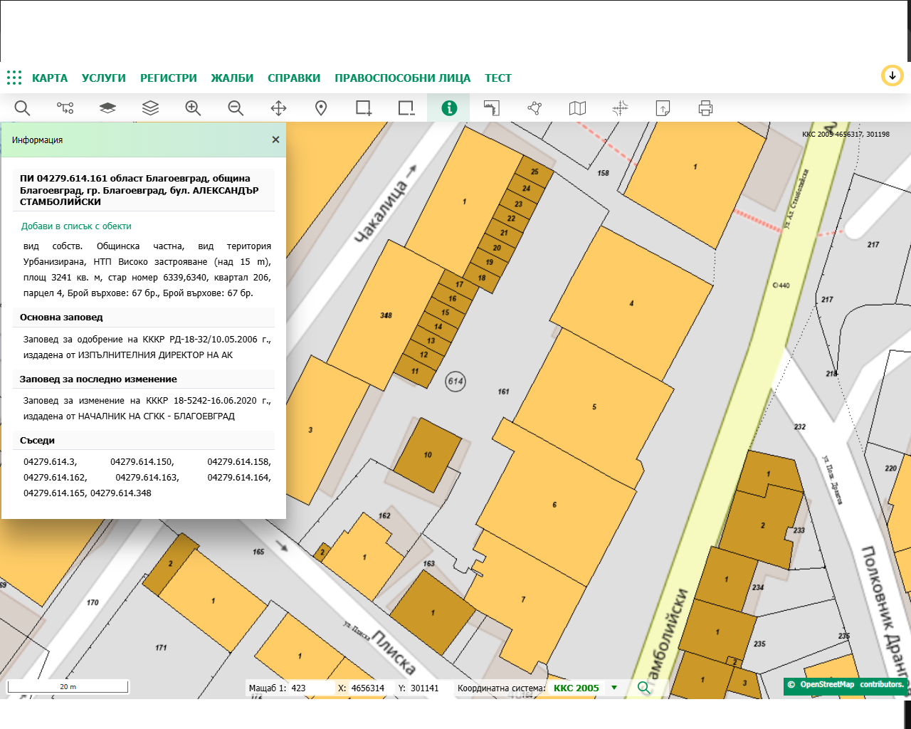 Общински терен (частна общинска собственост по кадастрална карта) от много години е в лошо състояние, в средата на имота, непосредствено пред гаражите, чийто собственици сме, се образуват огромни дупки и се пълнят с вода и кал. Имотът няма и никакво осветление. Предвид неговото местонахождение - в идалния център на града, както и намерението на всички собственици от няколко блока, които паркират на това място със собствени усилия да асфалтират имота с предназначение за паркинг, бих искал да сигнализирам за неговото недобро състояние и да отправя молба да заложите във вашата програма неговото облагородяване - асфалтиране или полагането на тротоарни плочи. Върху имота има и отводнителни шахти. В момента теренът изглежда равен, тъй като със собствени усилия гражданите сме положили чакъл и пясък, но това е временно решение.