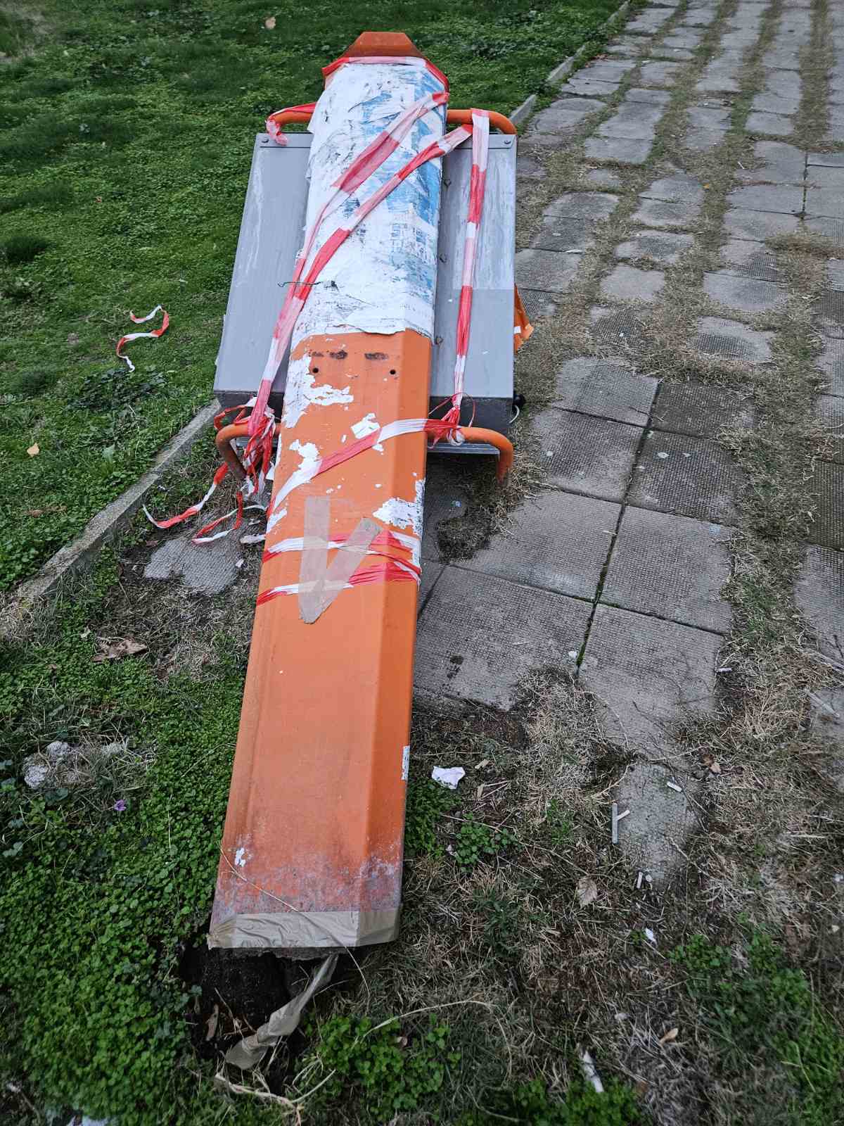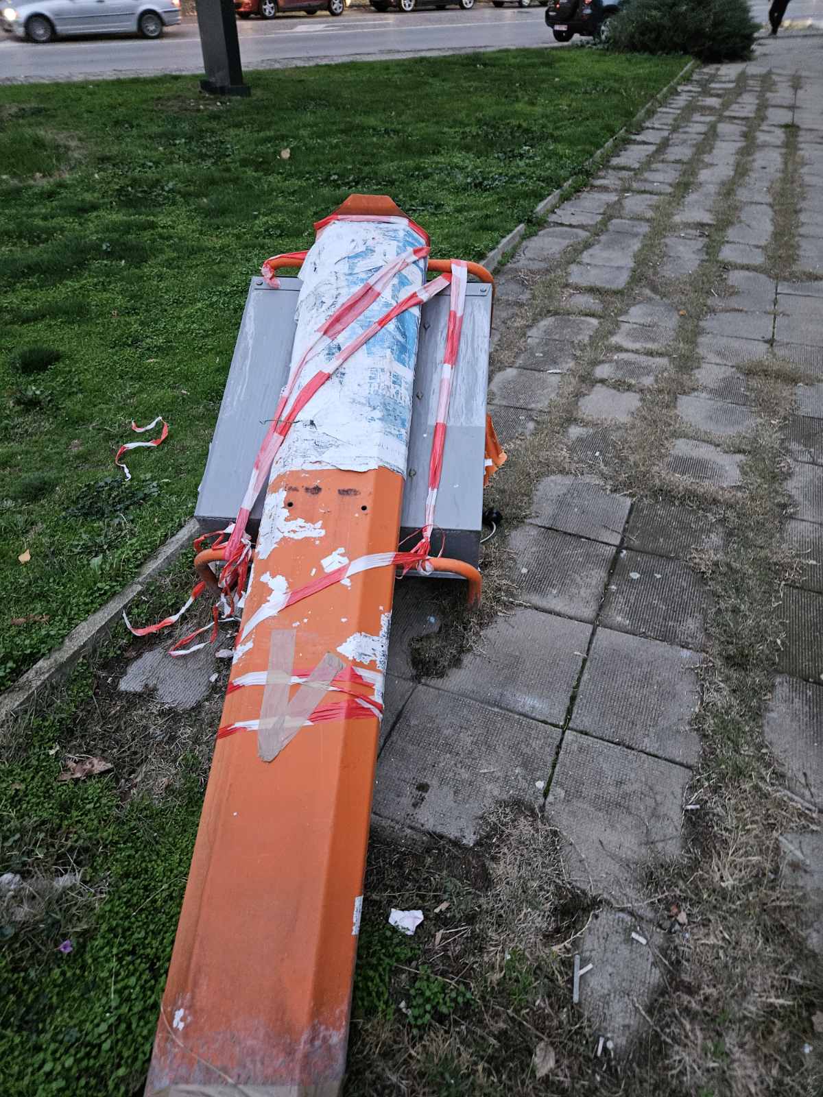 На адреса има бивша телефонна кабинка. Сега тя е блъсната и от нея стърчат кабел. Възможно е да са опасни.