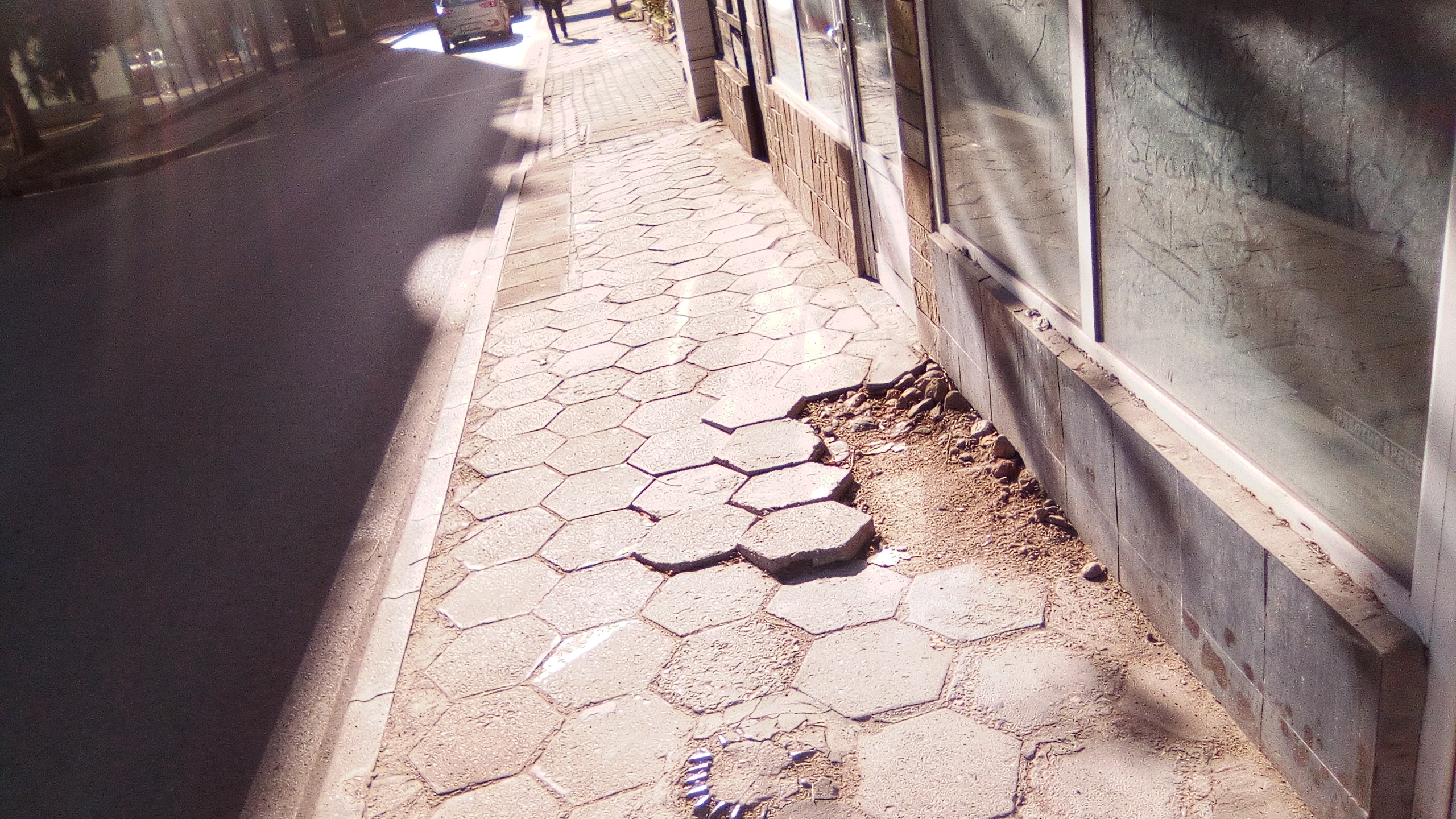 Тротоарът е разровен. Наскоро Общината беше осъдена да плати 3000 лв. на жена, жестоко паднала на ул. "Свети Иван Рилски". Защо Общината не контролира процеса и оставя възможност за други инциденти?