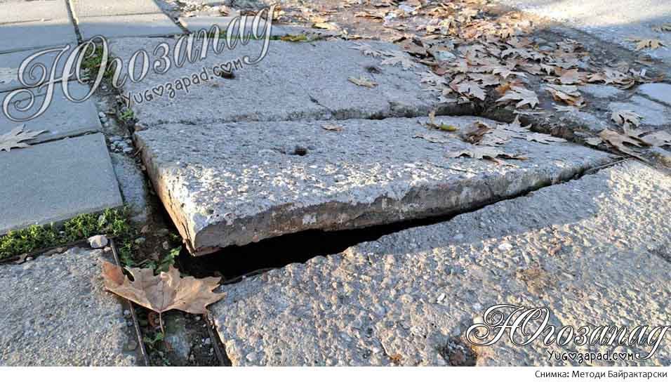 Опасна шахта на тротоар точно преди пешеходна пътека,особено вечер е възможно да не я види някой и да стане инцидент,през деня също,шахтата се намира от страната на Американските общежития,на пешеходната пътека в началото на алеята на общежитията.