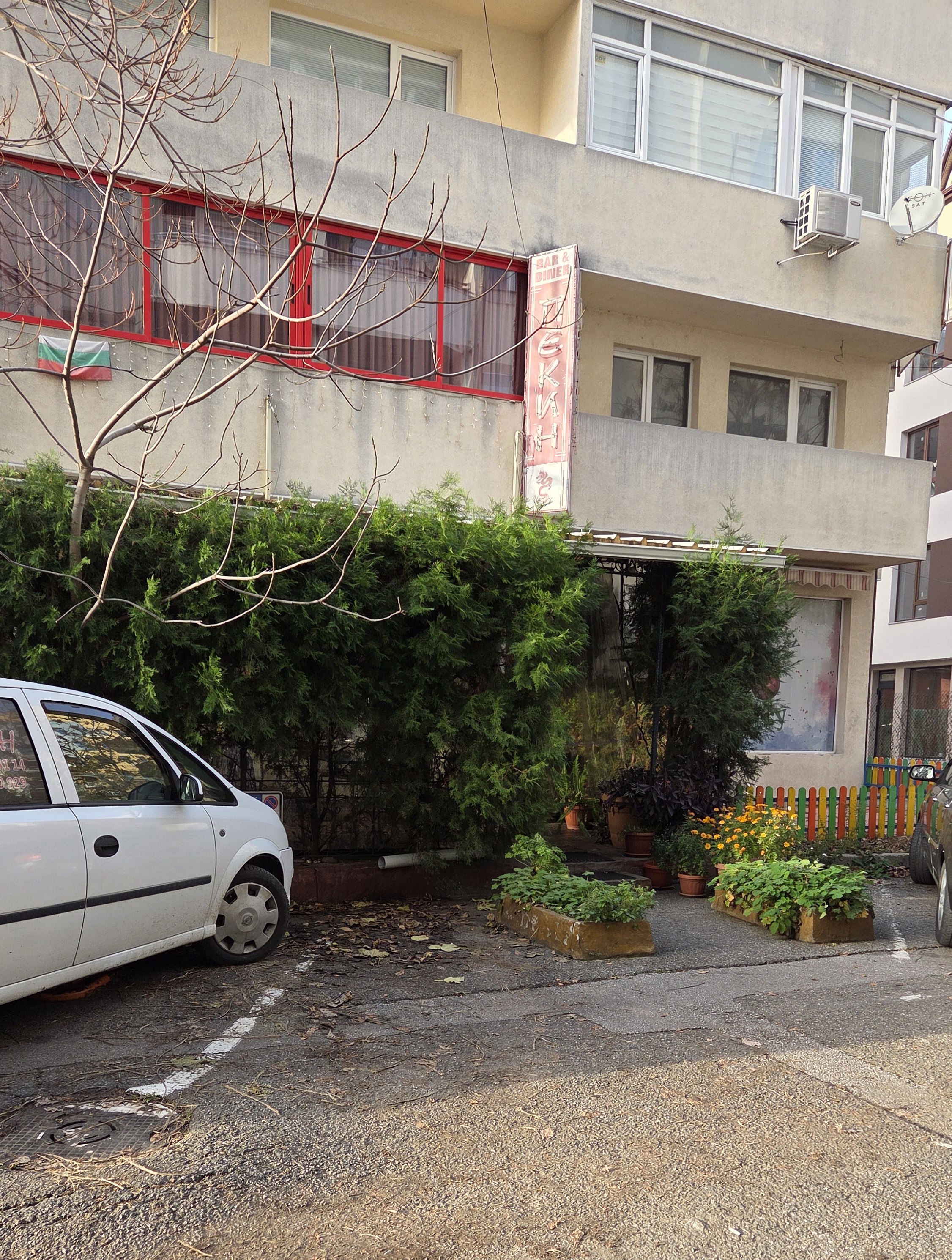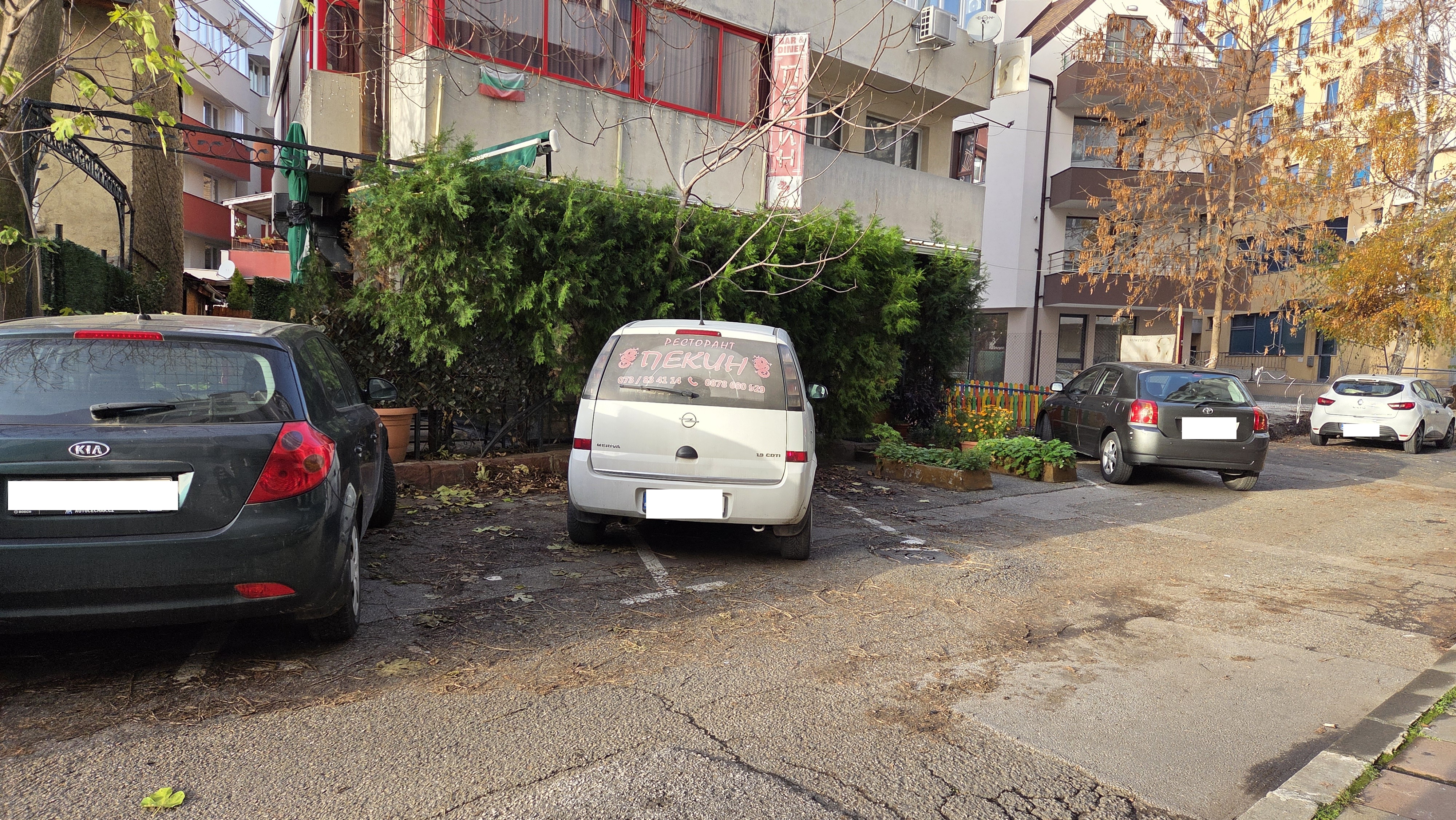 Здравейте! Тече трети месец откакто след предишен сигнал и проверка, получих отговор, че на нарушите е съставен протокол с предписания за премхване на бетоновите саксии. Към днешна дата 16.11.2025г саксиите все още са там... Освен това трябваше след като бъдат премахнати, улицата и паркоместата да бъдат преначертани наново, тъй като в дъното имаше казус с две паркоместа и все още не е ясно за живущите в района попадат ли в синя зона или зоната е тупик. Обърнете внимание и на паркираната служебна кола на заведението, която всяка вечер след 22ч се препаркира по този начин, за да се пази място на следващ ден за още една (между саксията и колата). В неделя (неработен ден) за заведението колата също е паркирана по този начин, възпрепятсвайки паркиране на съседното паркомясто.