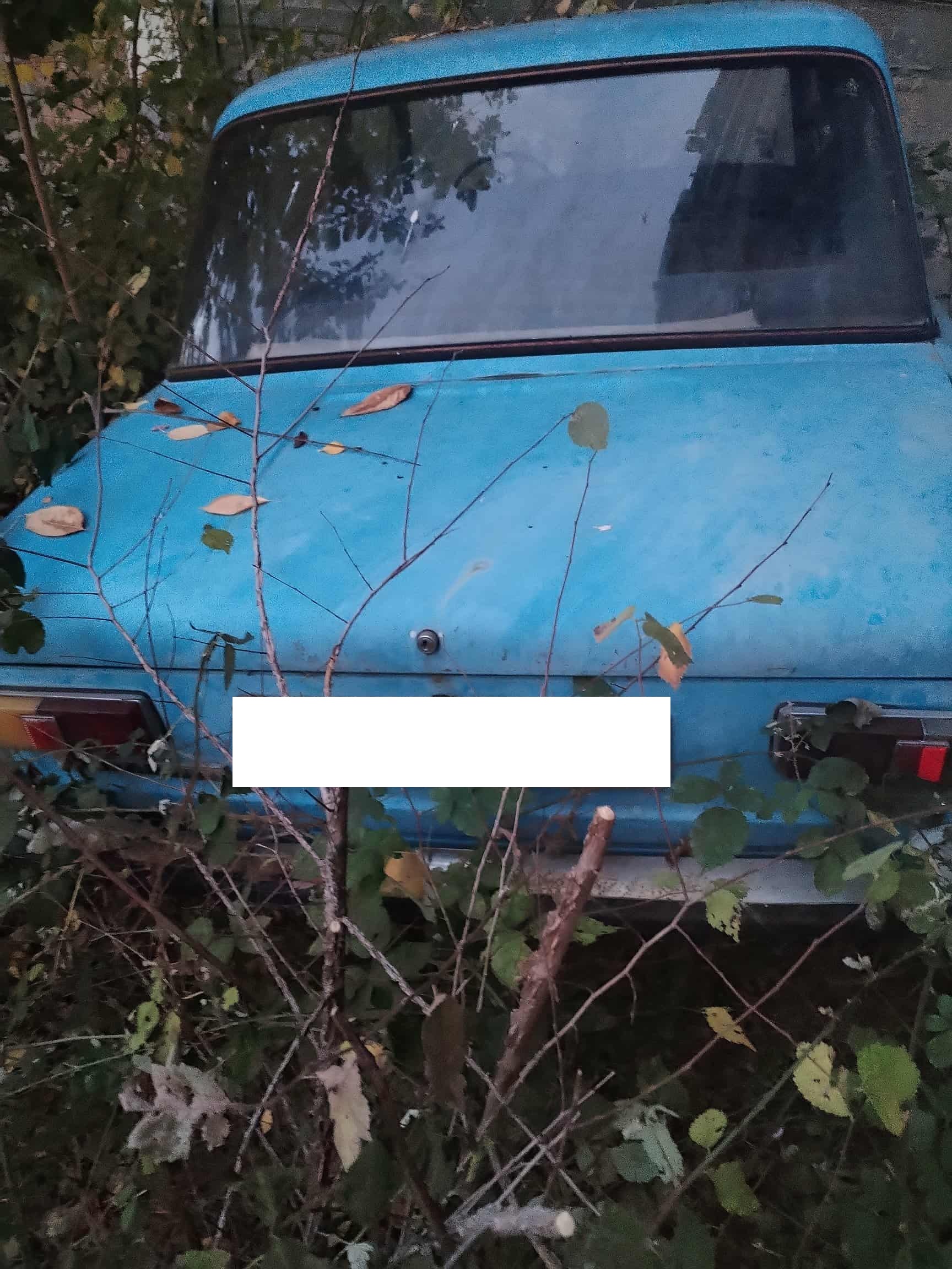 Изоставена кола и обрасло междублоково пространство
