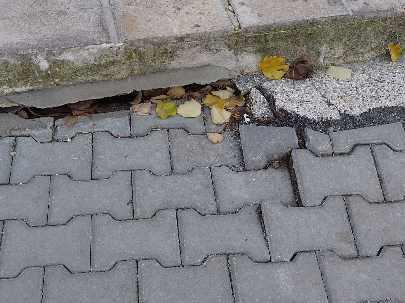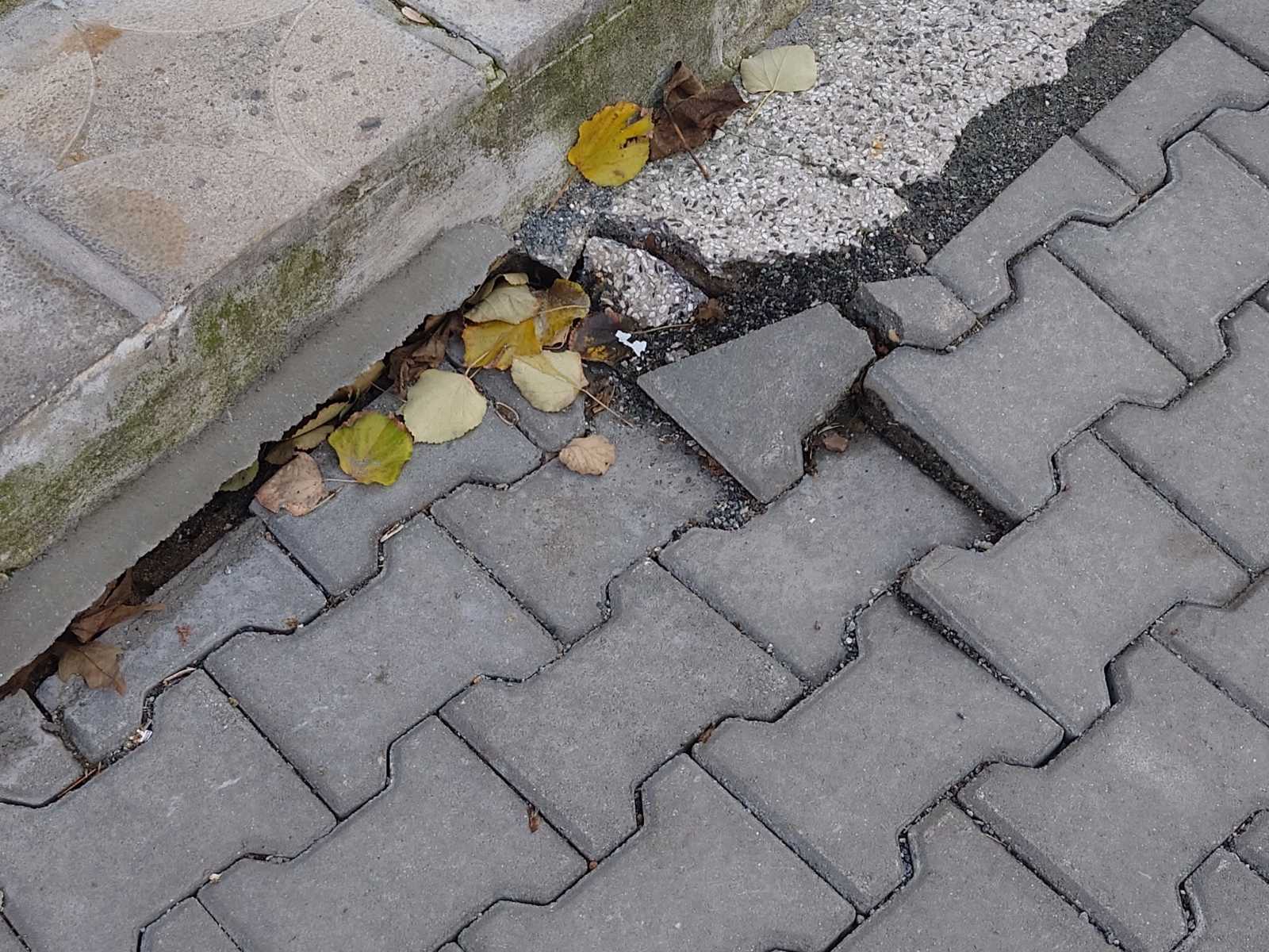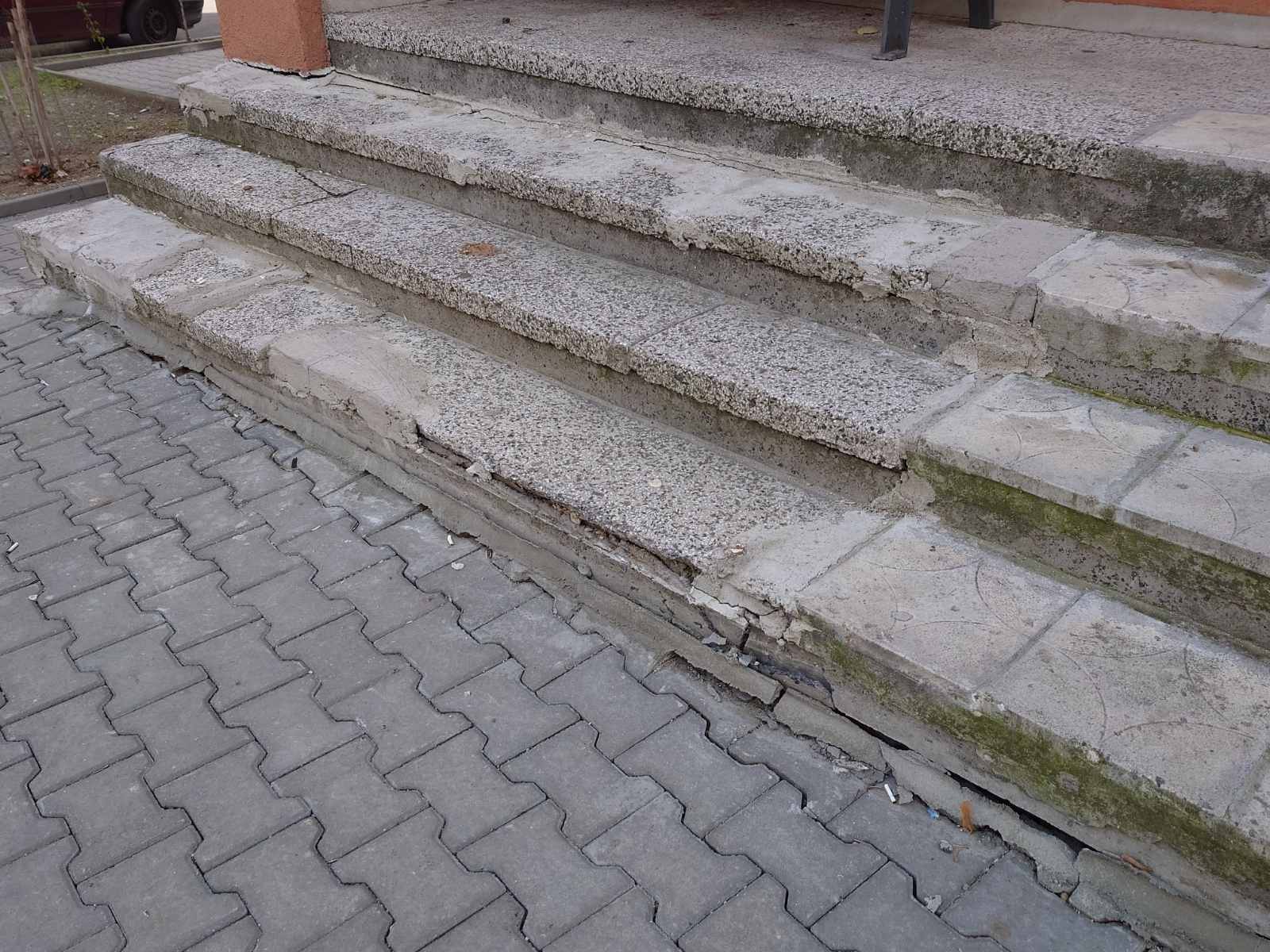 След направен ремонт на тротоара пред входа на посочената сграда, плочките са пропаднали и създават предпоставка за инциденти с живущи.