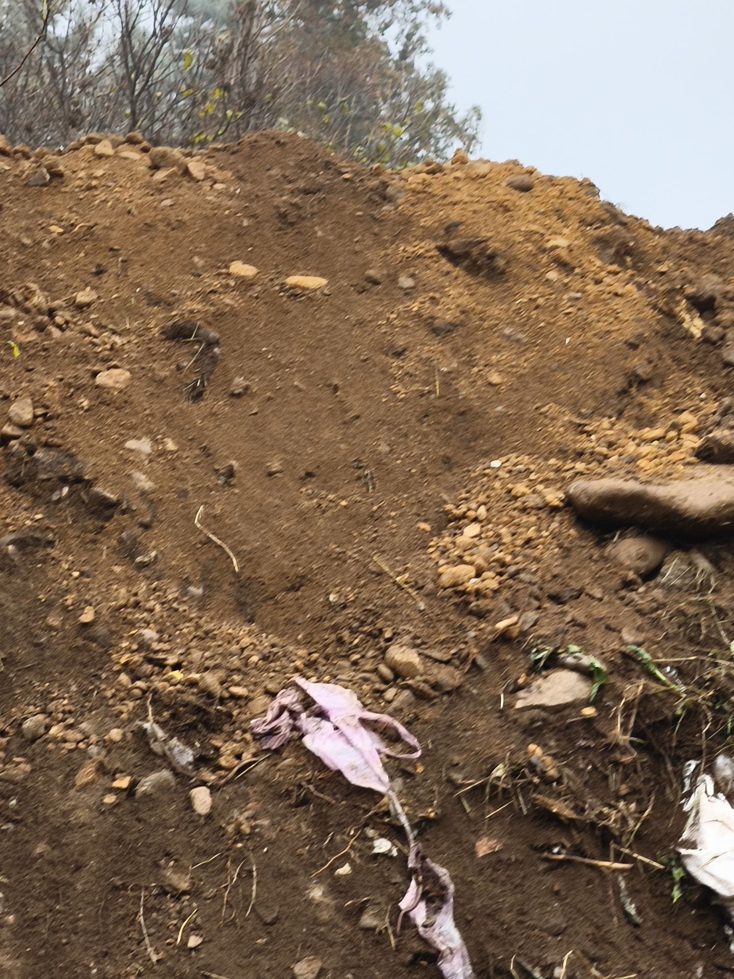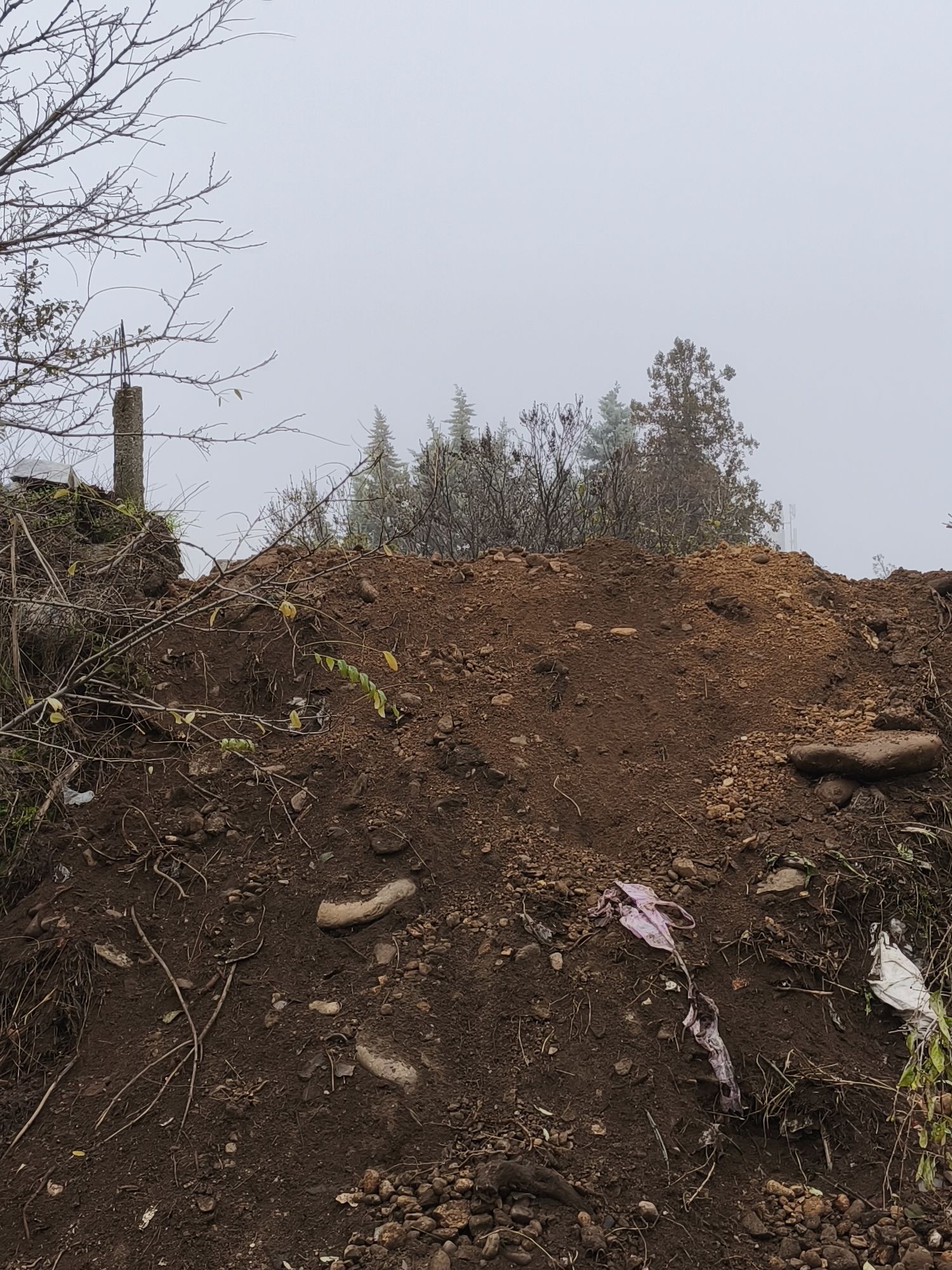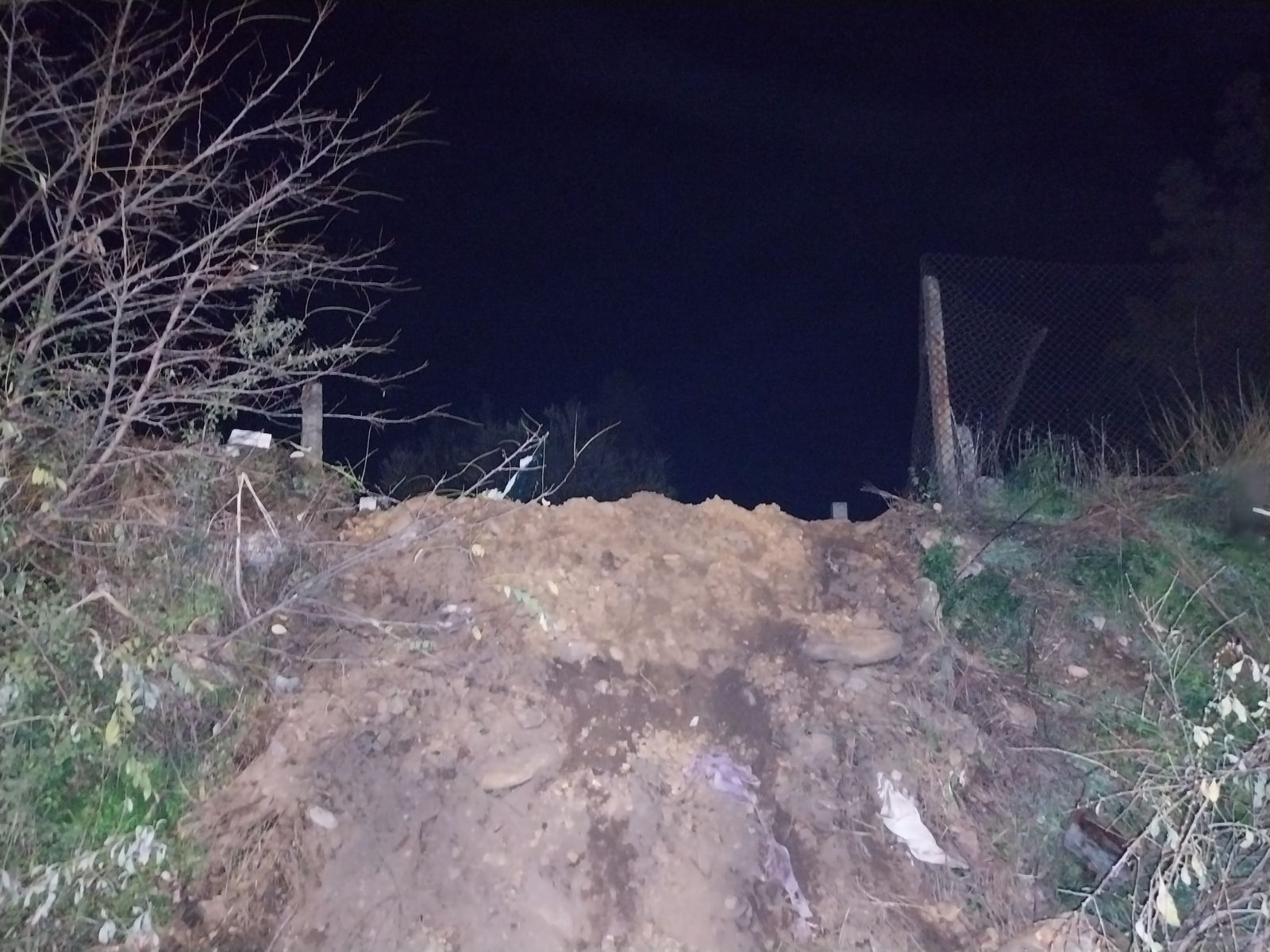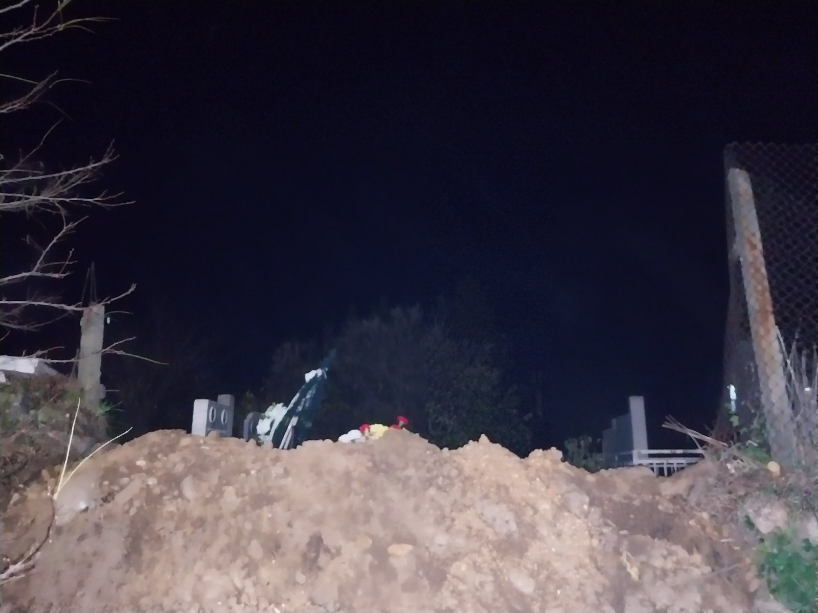Разрязана мрежа на гробищния парк и оставен насип от пръст. Нищо не е въстановено след изкопните работи.