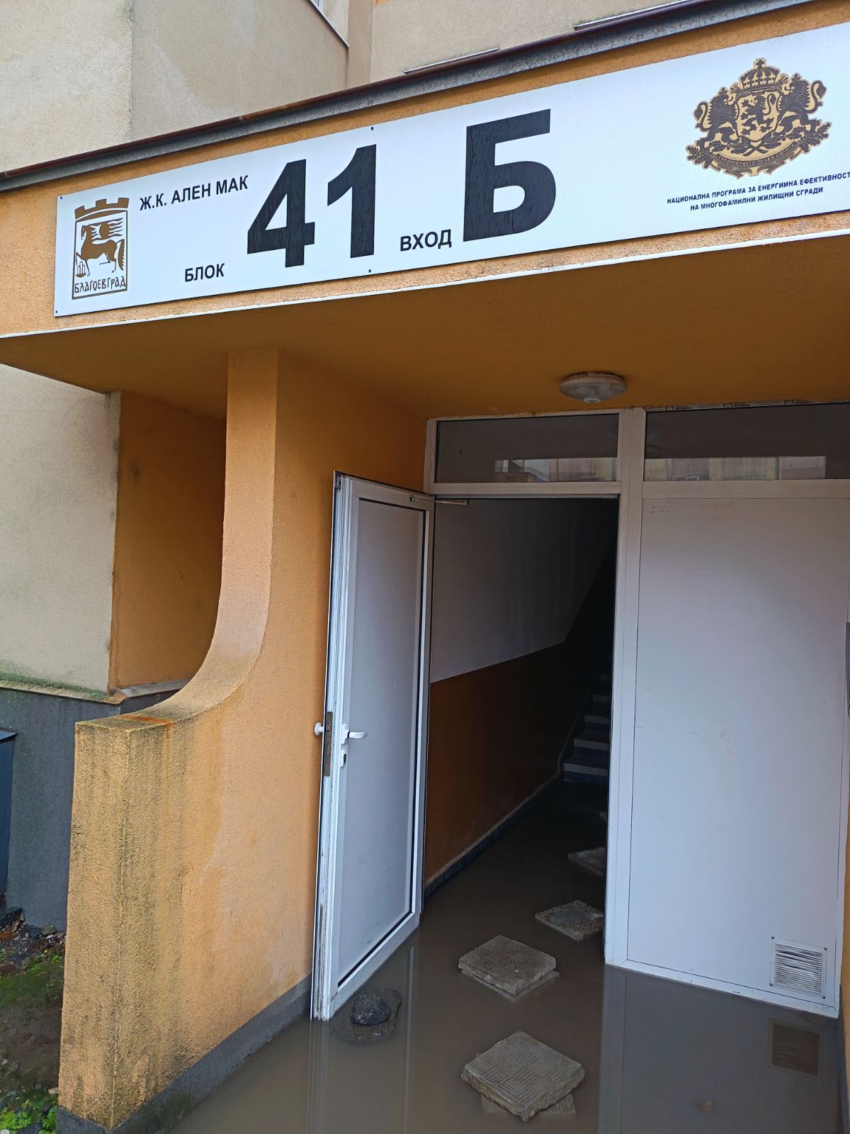 Проблем свързан с наклона пред двата входа на сградата. При дъжд се наводнява пред двата входа на сградата, както и на партерите в сградата и мазетата. Живущите желаят да се реши проблема, тъй като продължава вече с години. Многократно сме уведомявали общинската администрация за сериозният проблем, но все още няма адекватна реакция. Моля, за проверка на място и решение на проблема, както и за изграждане на инфраструктура, която да отвежда водата извън обсега на сградата.