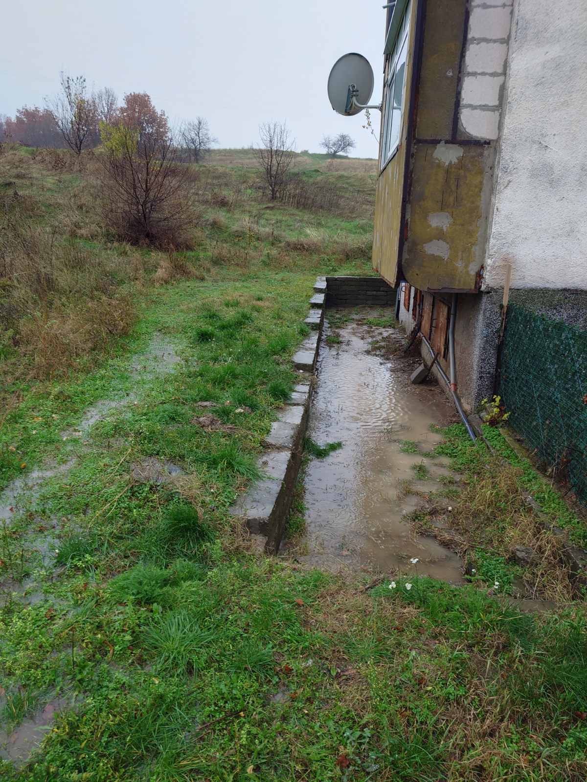 В следствие на обилни валежи и сградата се наводнява системно от наклоненият терен зад входа на сградата, който е общинска собственост и няма никаква отвеждаща водата инфраструктура.