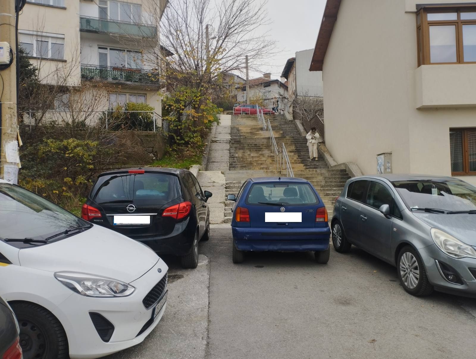 Паркиране пред подход към обществени стълби