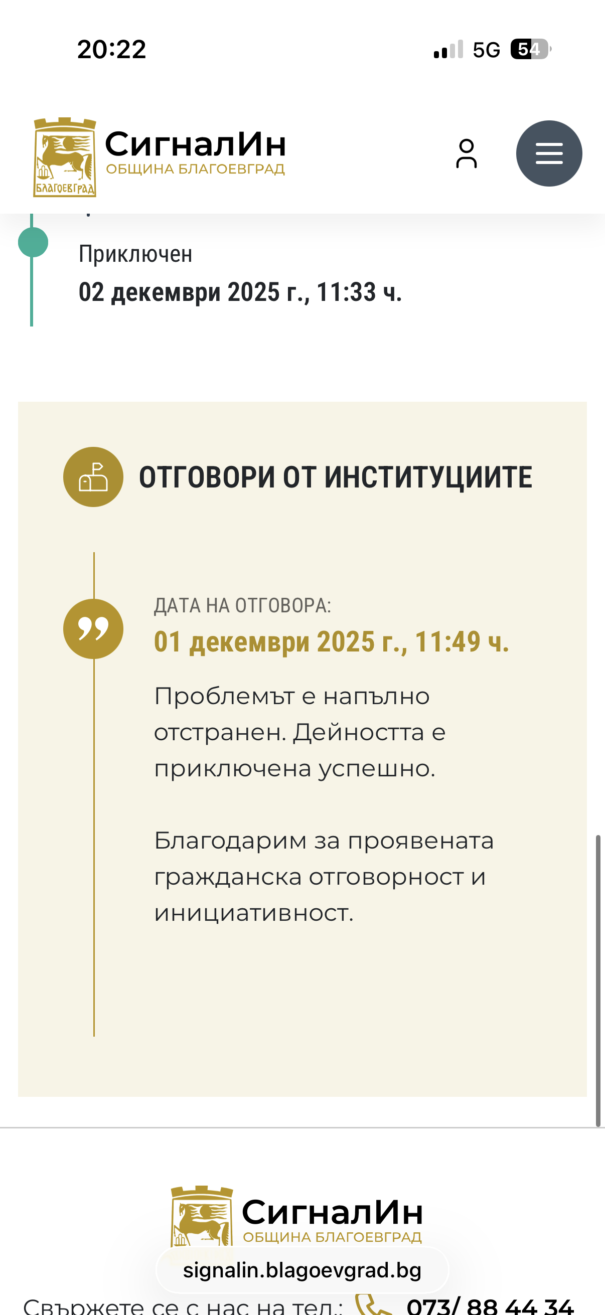 Пусках сигнала, но действия не са предприети, а тук в сигналин пише че е отстранен!! Моля този път го отстранете наистина.
