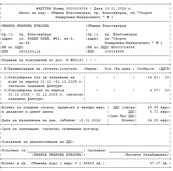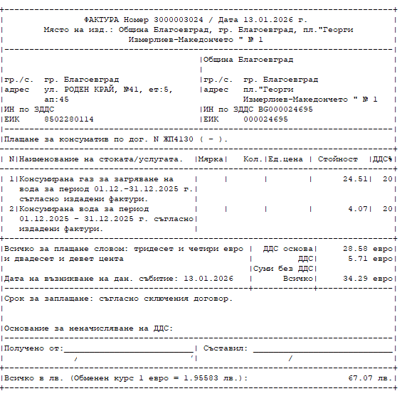 Моля да коригирате данните на Община Благоевград в издаваните фактури като посочите вярно името на площад "Георги Измирлиев - Македончето".