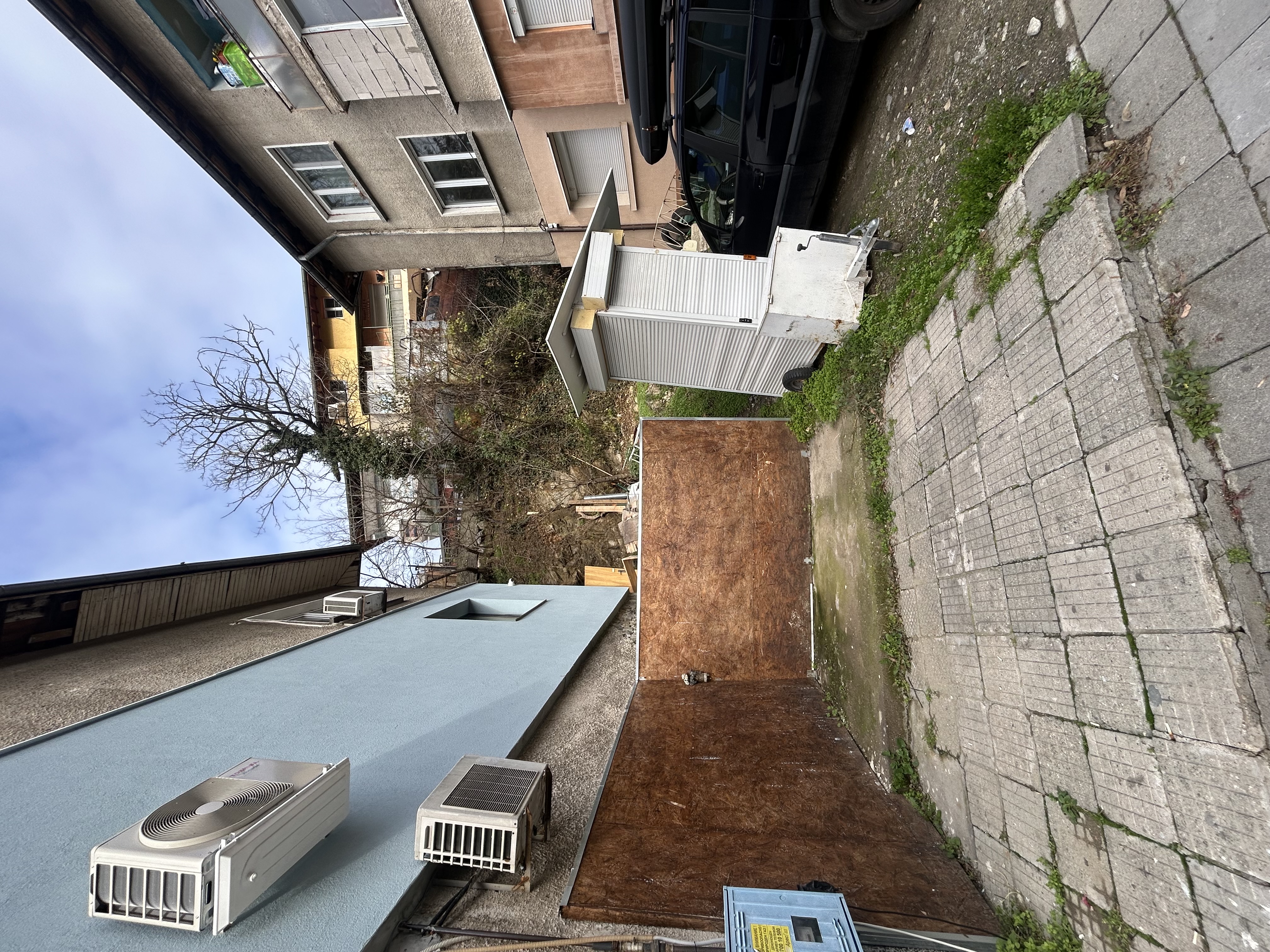 На посоченото място се намира високо изсъхнало дърво, разположено на стръмен терен между жилищни сгради. Дървото е обрасло с бръшлян, с видимо сухи и нестабилни клони, които представляват реална опасност от счупване и падане. Съществува сериозен риск за преминаващи хора, паркирани автомобили и близките сгради, особено при силен вятър или лоши метеорологични условия.