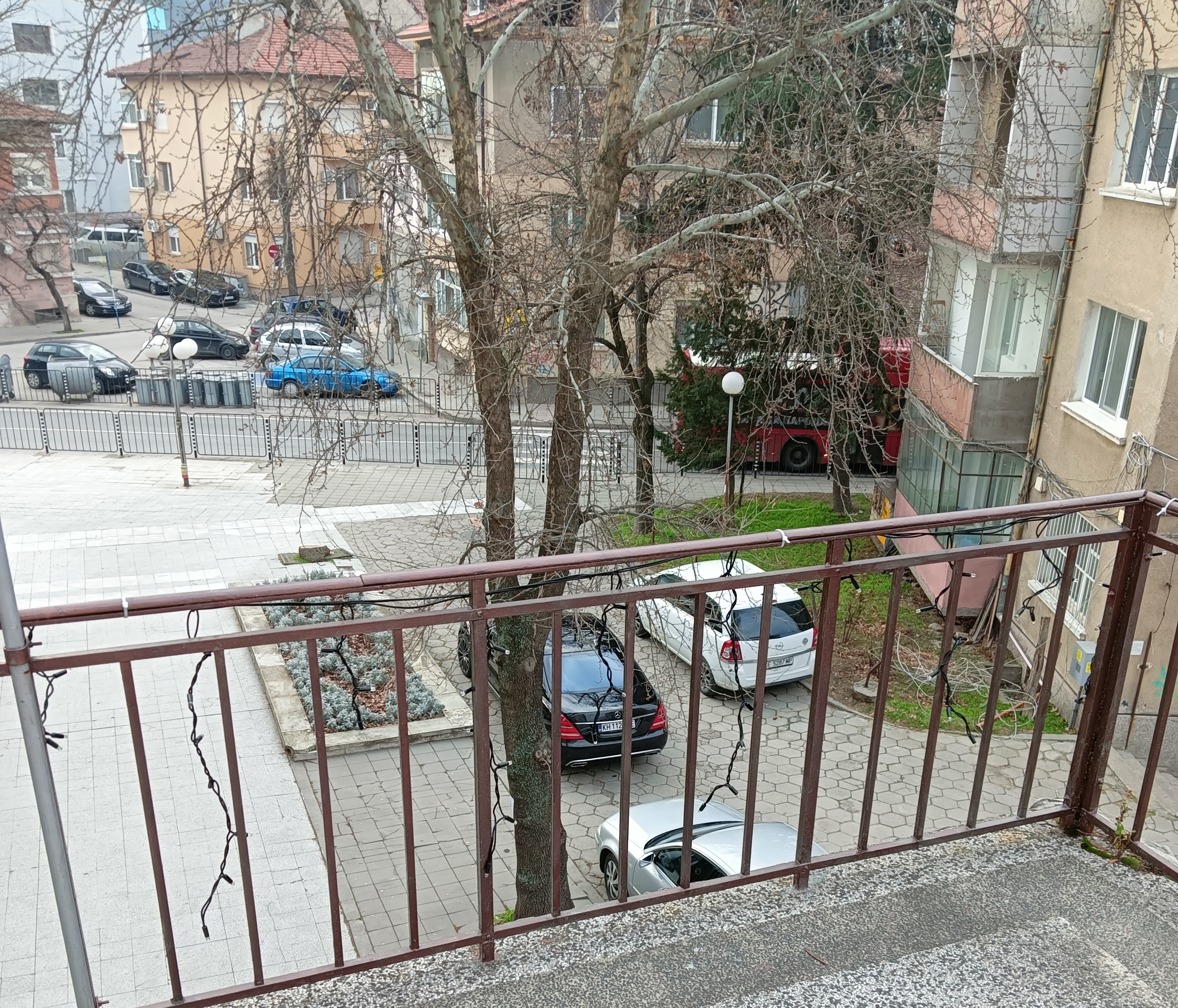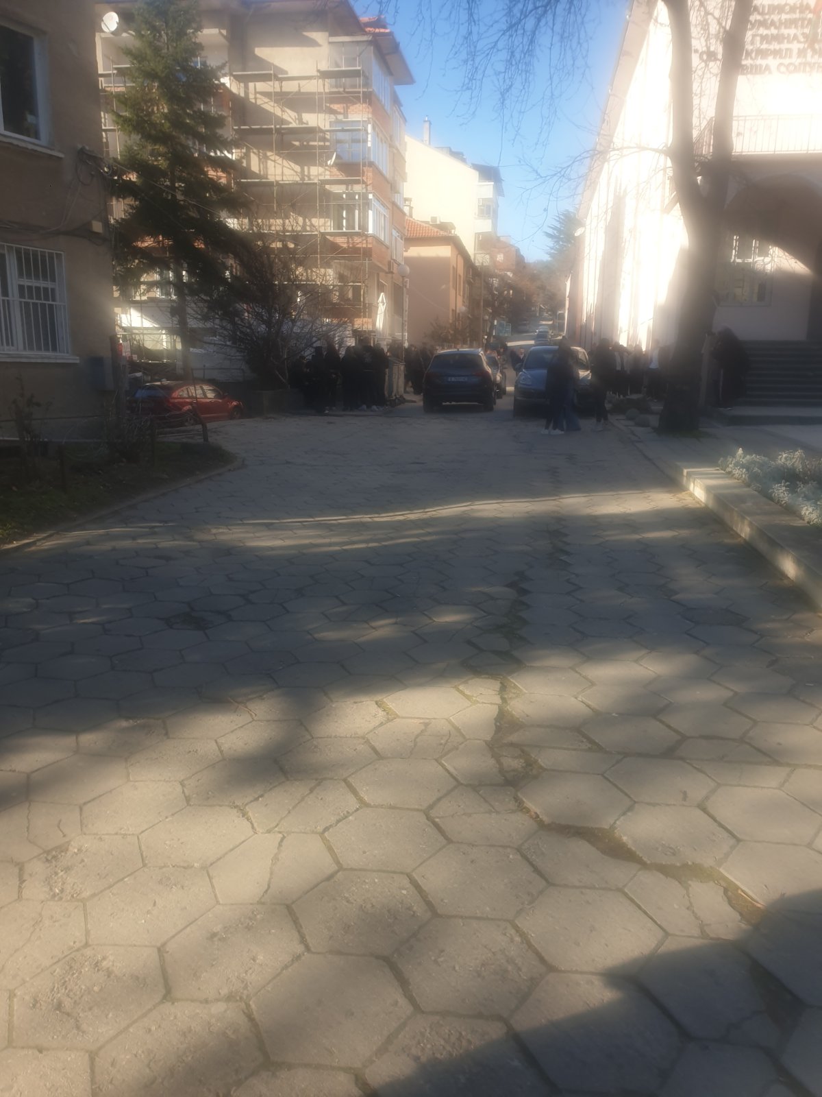 Неправомерно паркиране на тротоарите пред Националната хуманитарна гимназия в Благоевград