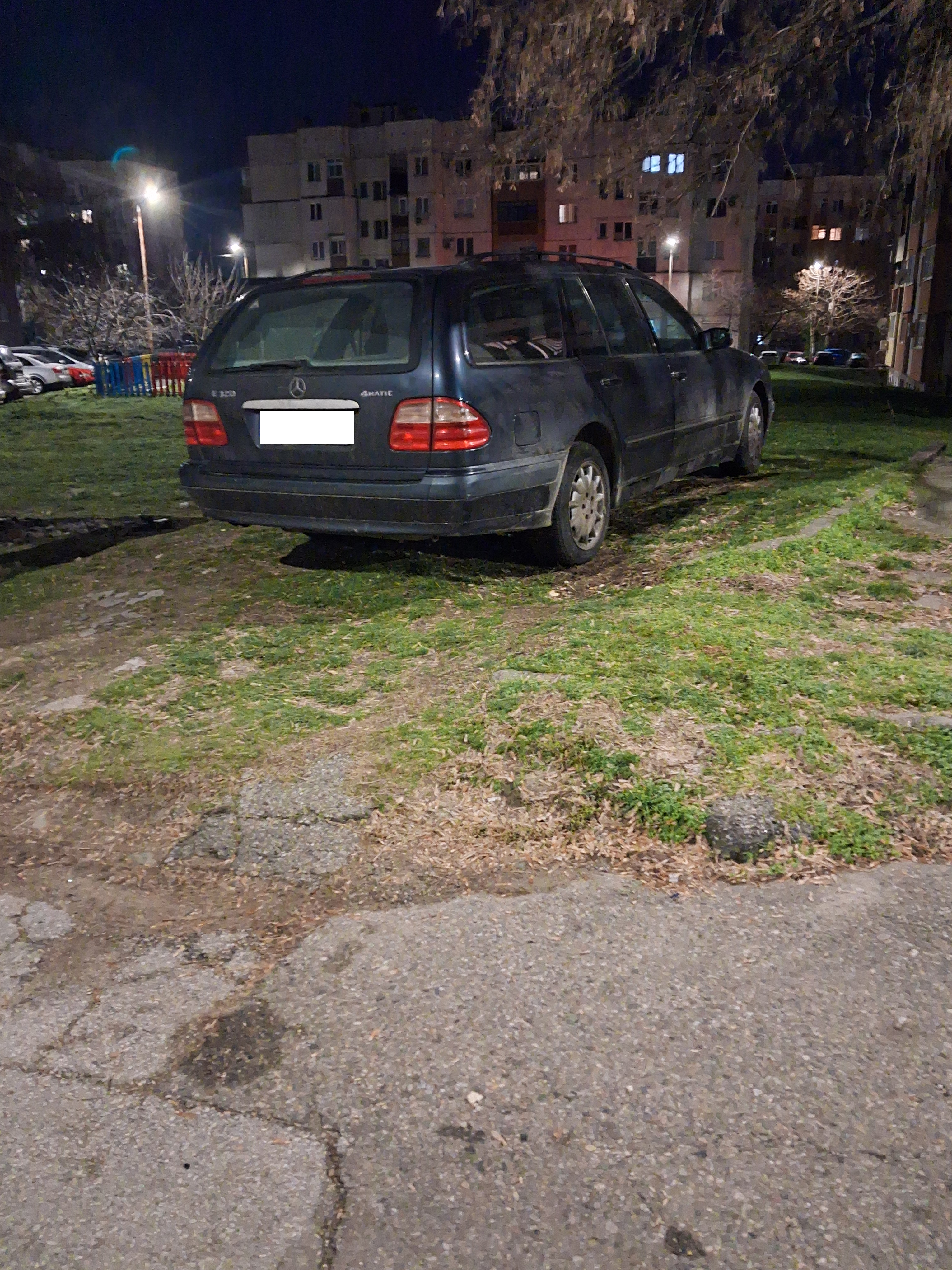 Непрекъснато паркиране на тревните площи от различни автомобили.
