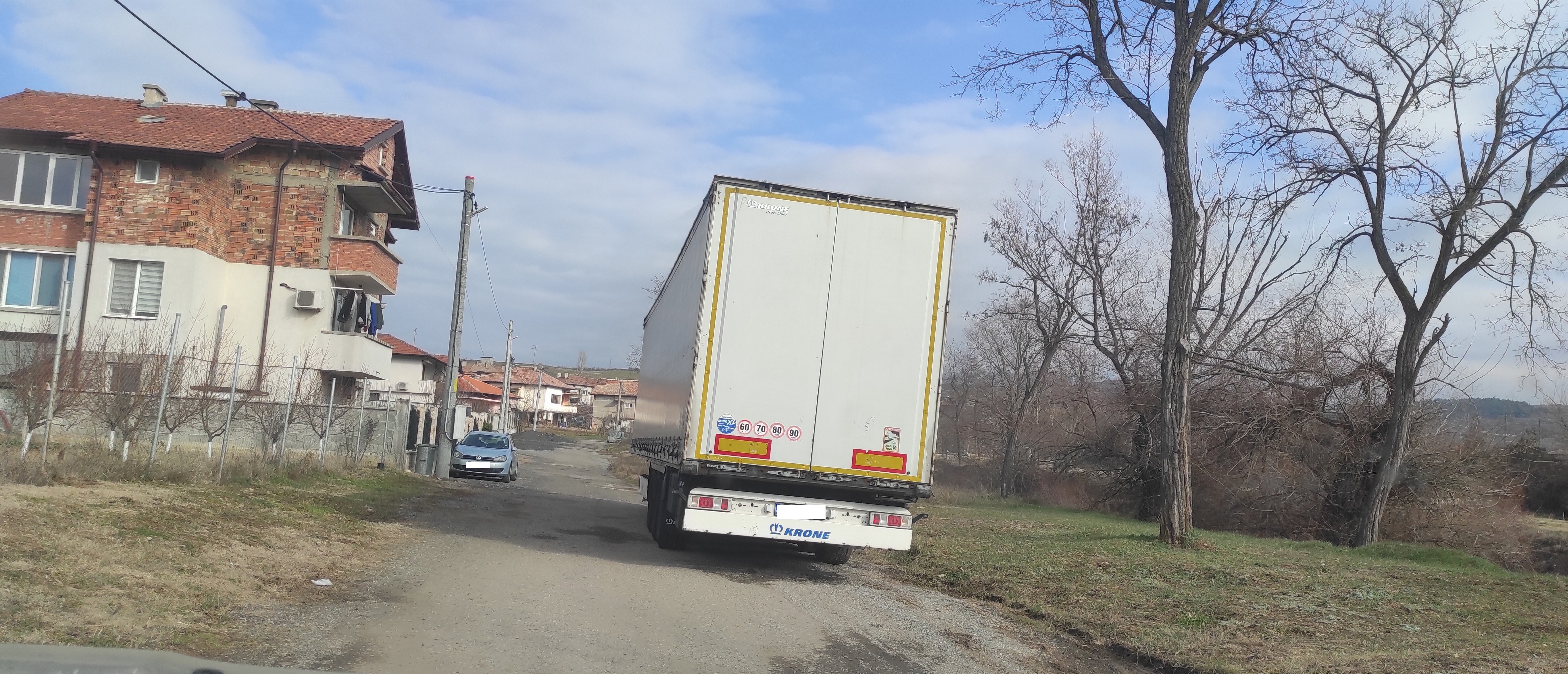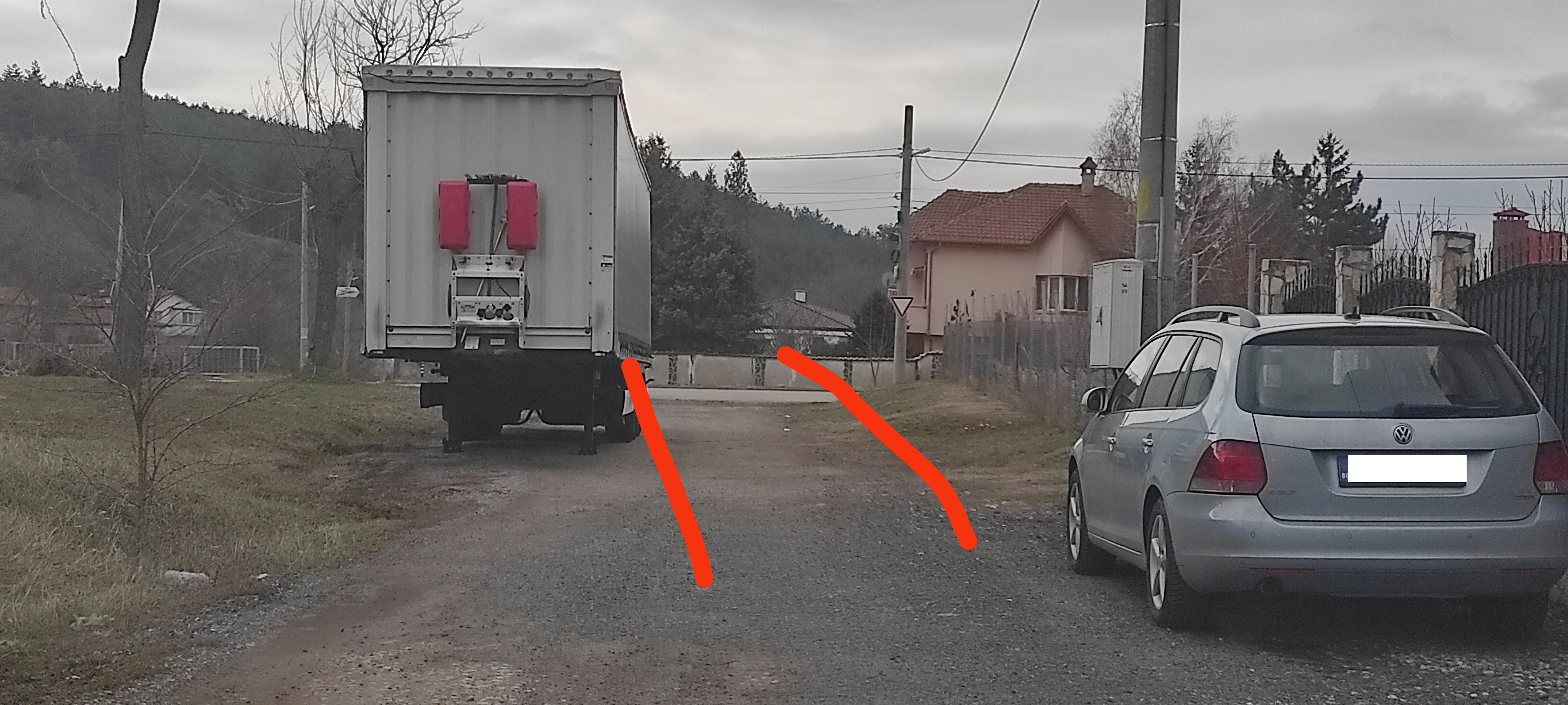 Това е улица, а не безплатен паркинг за ремаркета. Минават деца, а няма никаква видимост, защото е преди завой. Не може да се разминат две коли. Така е от година. Кметът знае, но е зависим и не предприема нищо... Трябва да стане инцидент ли?