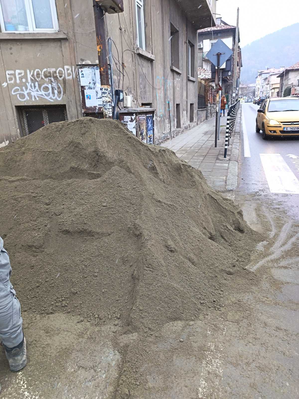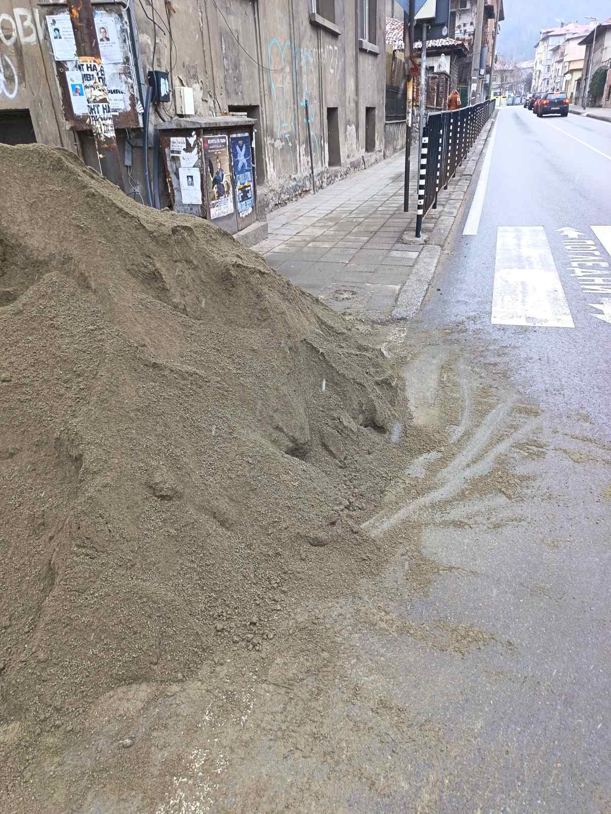 При проверката е установено, че на място действително е имало изсипан пясък за нуждите на фирма „Ви Билд". В момента на проверката работници на фирмата вече освобождаваха подхода към тротоара. Извършено е фотозаснемане на обекта.