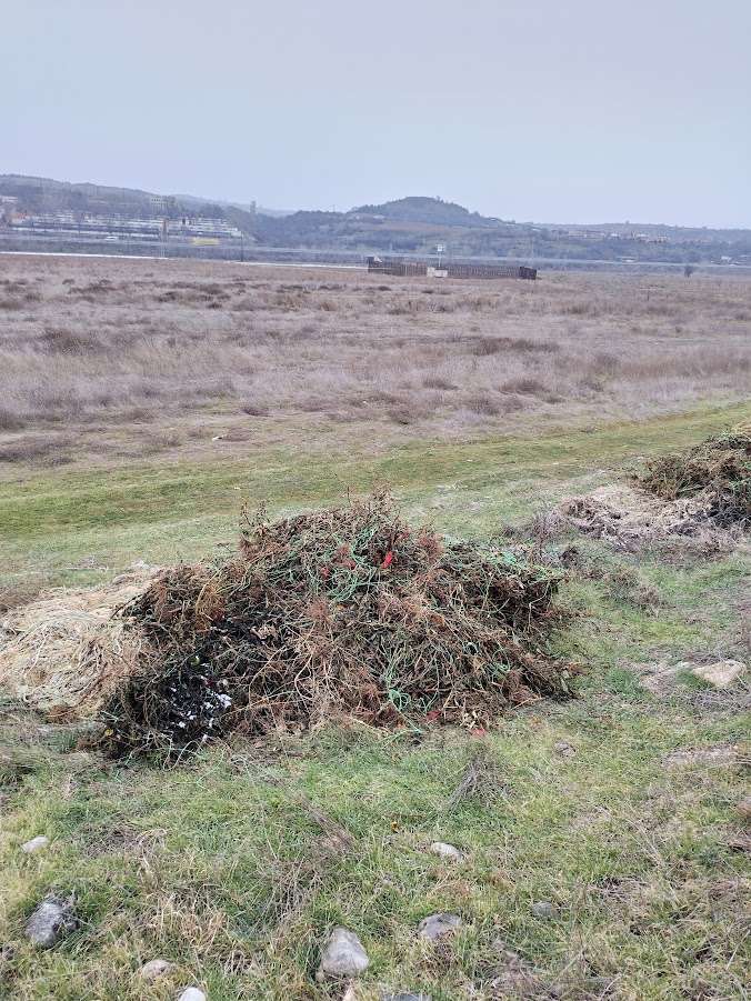Здравейте, до черния път на дигата на р. Струма между Благоевград (Зелендолски мост) и Бело поле има оранжерии, до тях, до самата дига са изхвърлени боклуци, вероятно от оранжерията, биобоклук оплетен в найлонови важета. Личи че това е правено многократно, долната част на купчините е изсъхнала , найлоновите въжета не са отстранени. Моля проверете и се погрижете за отстраняването! По същия път, на много места има изхвърлени и мебели, пластмаси и гуми.