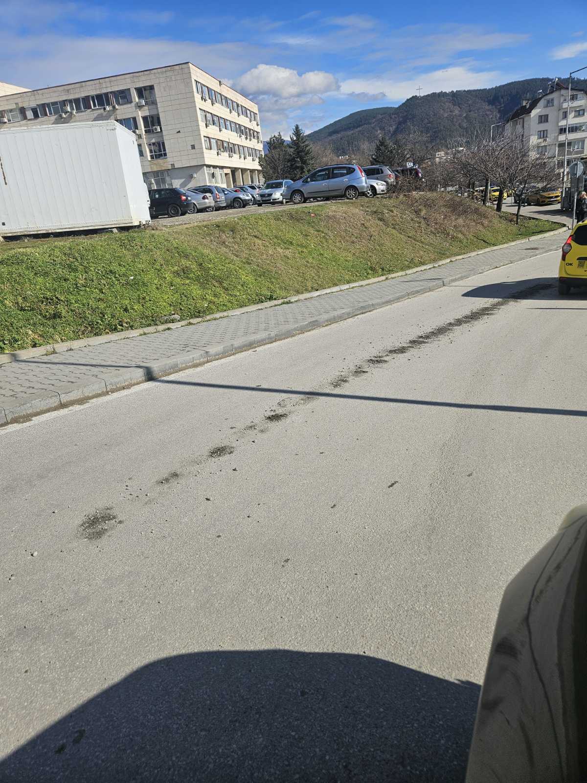При извършената проверка от служители на звено „Инспекторат“ се установи наличие на малко количество разлят бетон по пътното платно. На място не беше установен нарушител. Сигналът е препратен по компетентност.