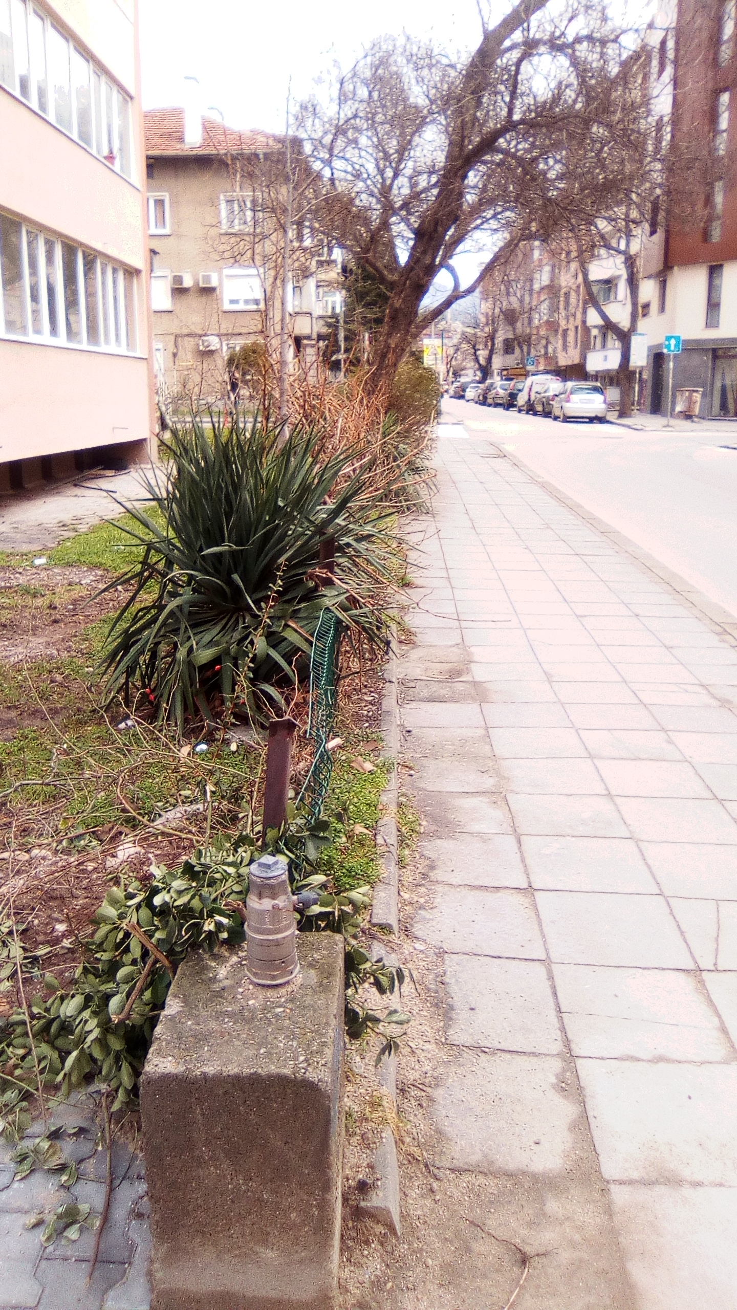 На ул. "Хр. Татарчев" преди кръстовището с ул. "Пере Тошев" растителност е отишла до втора плочка от тротоара и пешеходците се принуждават да вървят в края. Благодаря.