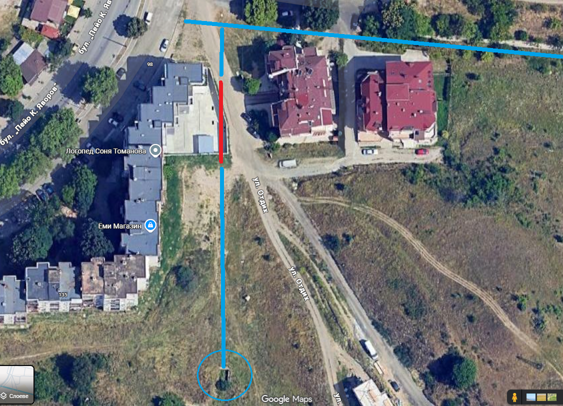 При строежа на сградата, която е до блок 133а бяха повредени и премахнати тръбите, които отвеждат дъждовната вода. От тогава при всеки дъжд насъбралата се вода се оттича покрай сградите и по пътя си повлича кал, при което цялата локална улица (паркинг)(пред блокове 133-139) се е превърнала в много неприятно за пресичане място. На скоро почистените отводнителни шахти на локалната улица (паркинга) отново са запушени с кал. Многократно съседи са пускали сигнали в общината и дори са събирани подписи от доста от живущите в района. На прикачената снимка със синьо е означена инфраструктурата отвеждаща водата, а с червено е означено приблизителното място на премахнатите тръби.