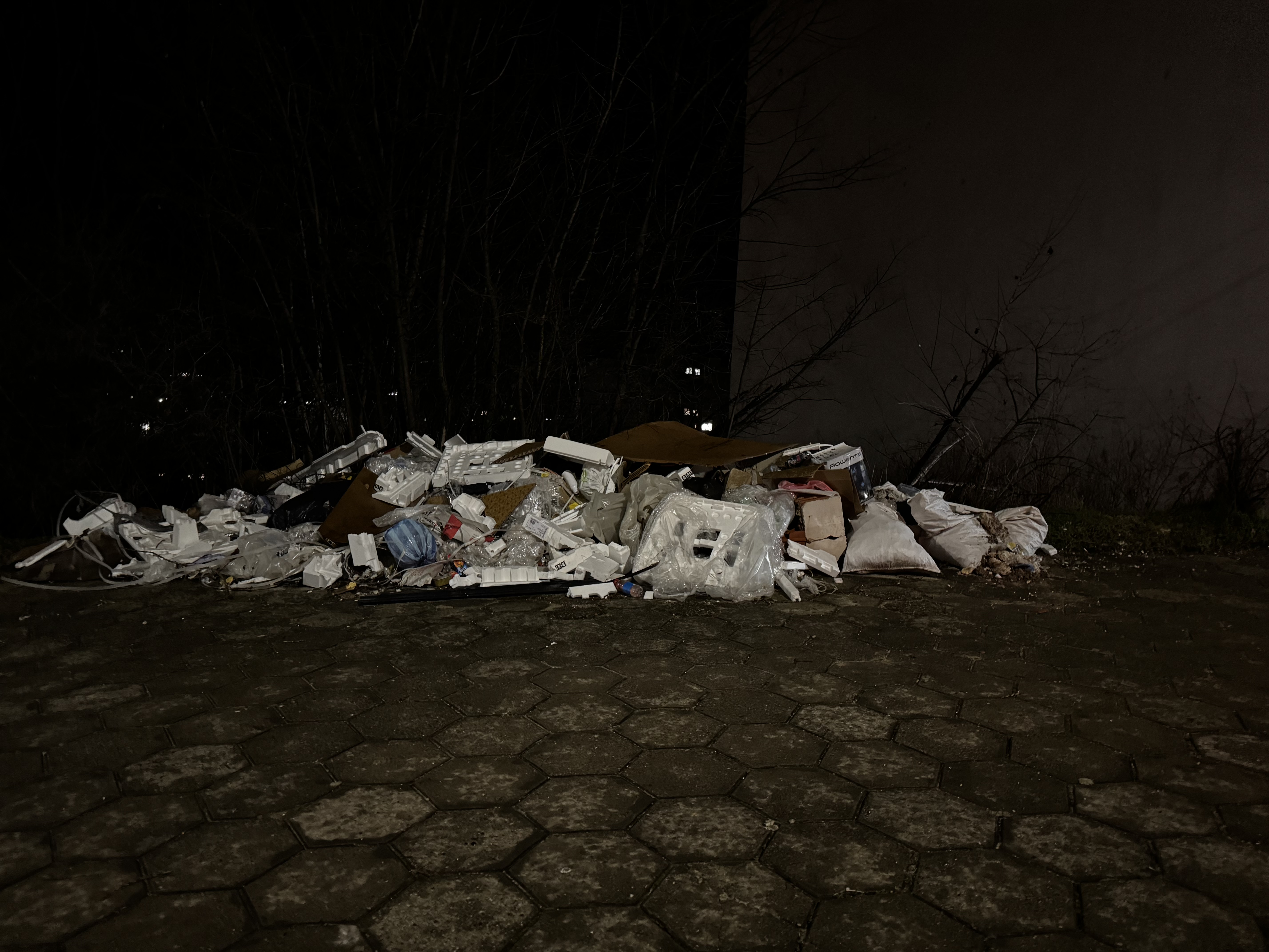 На тротоара до новопостроена сграда на ул. Борис Ангелушев има огромна купчина боклуци, вкл. леки стиропори, които лесно се разнасят от ветровете. Струпването на боклуци на това място е рецидив, виж сигнал №102023 от 08.05.2025. Боклуците стоят там с месеци и на никой контролен орган не му прави впечатление. Моля да се предприемат действия по налагане на глоби с цел превенцията на образуването на такива сметища.