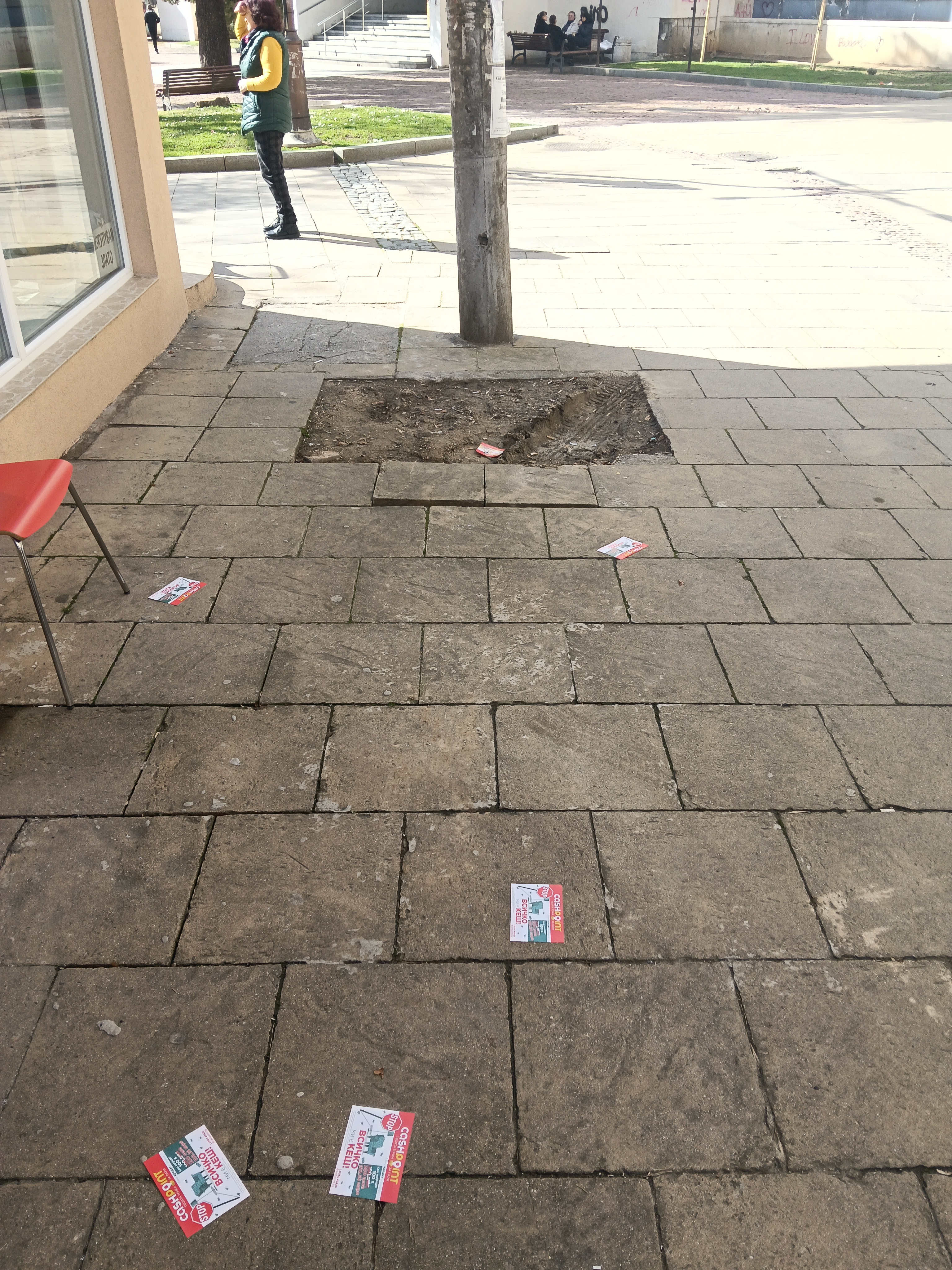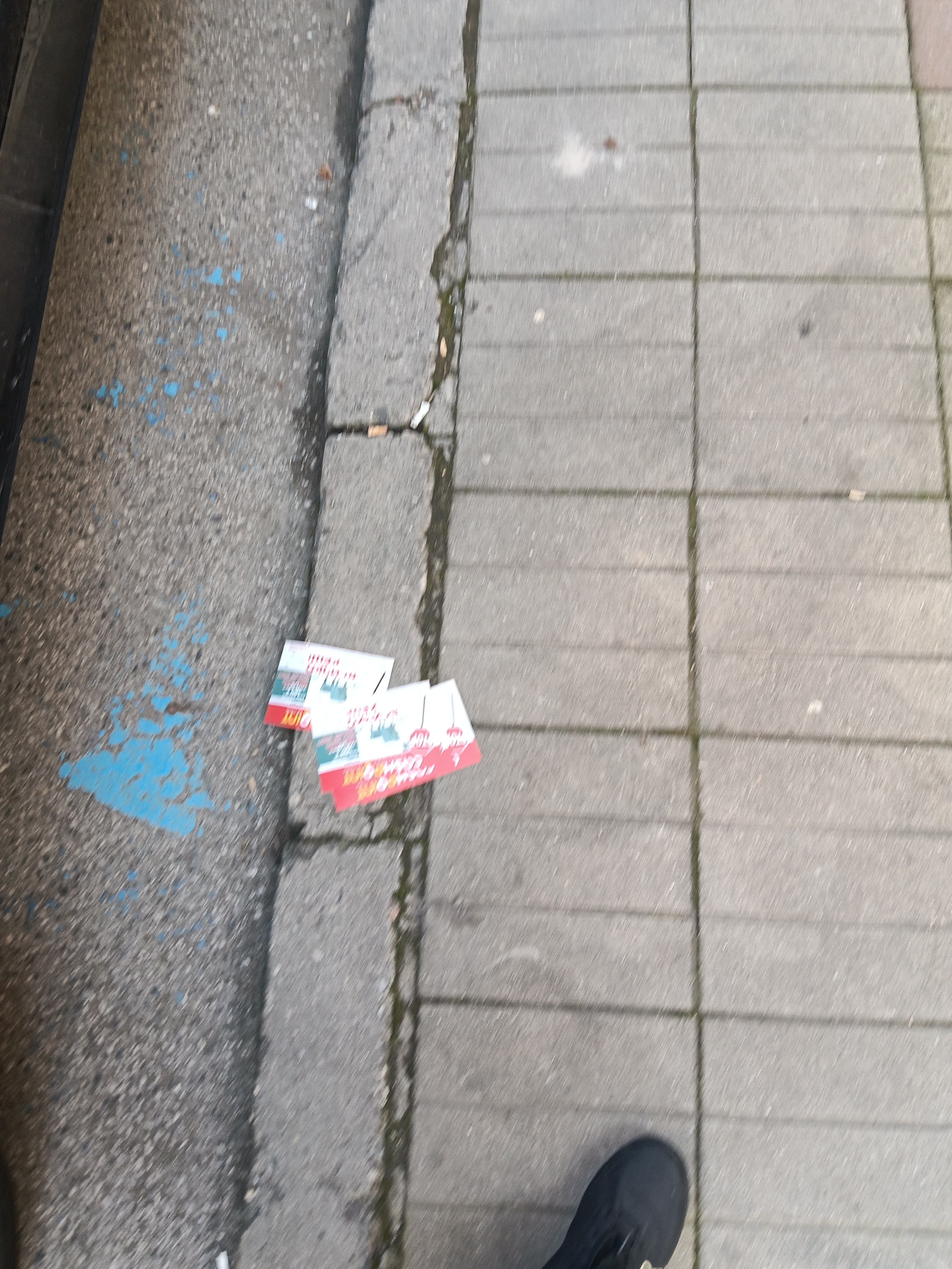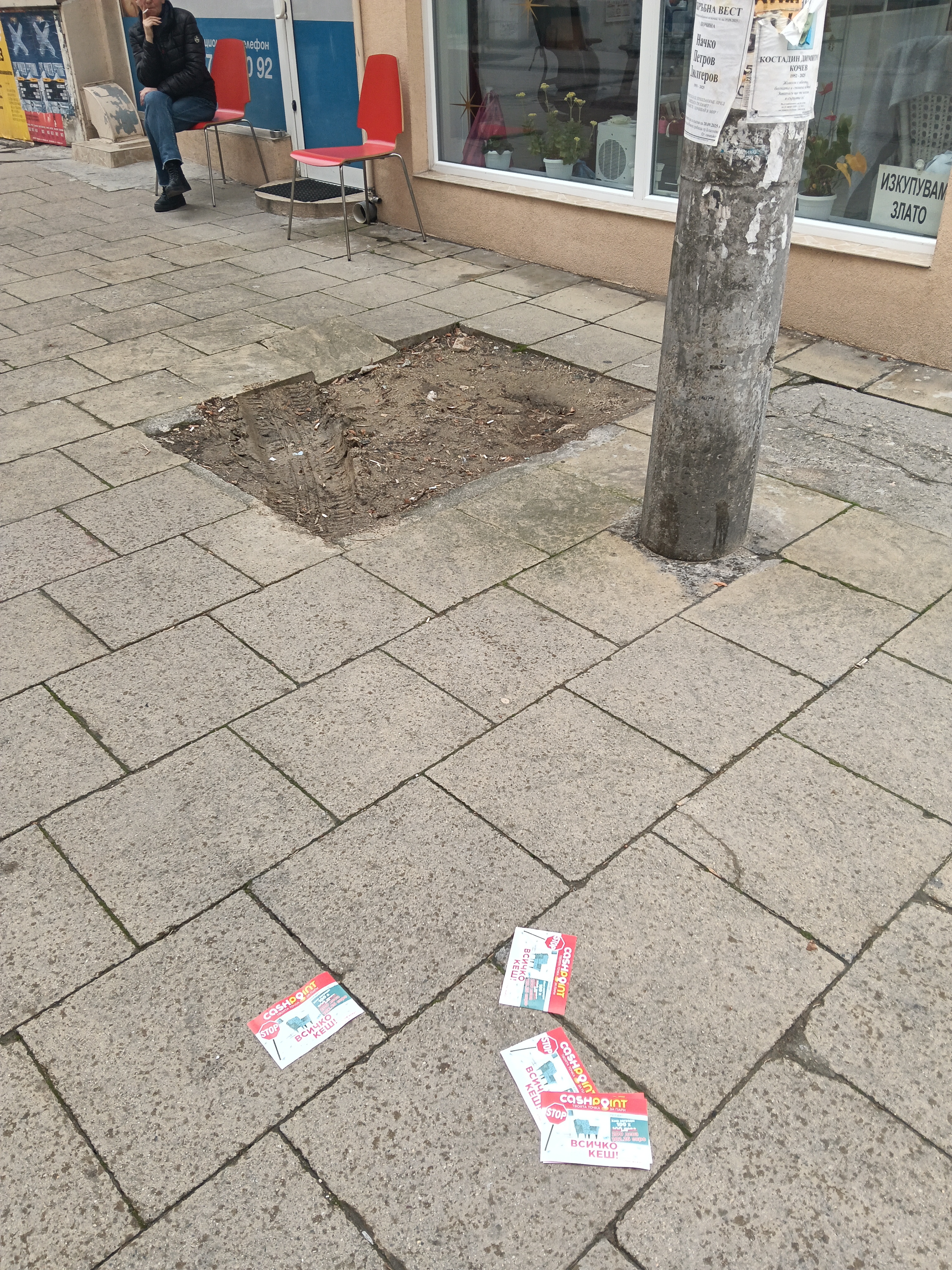 Здравейте! И вчера и днес ми хвърлят флаери(брошури) по земята от пл.Христо Ботев 10 до ул. Христо Смирненски 4 .Няколко пъти съм правила забележка на служителите на Кеш Пойнт да не замърсяват градска зона и да не хвърлят по земята, но те продължават. Моля, да бъдат глобени.