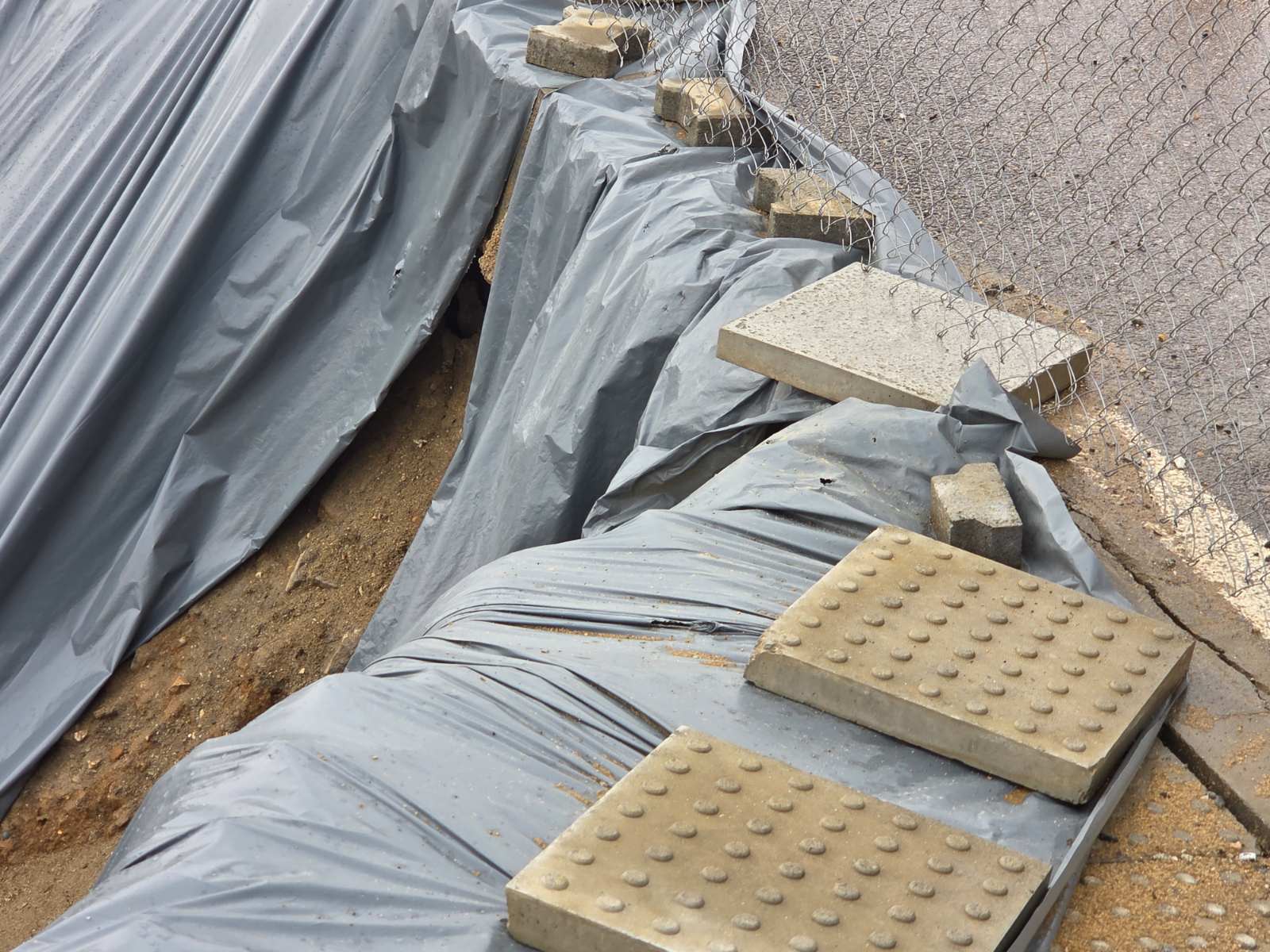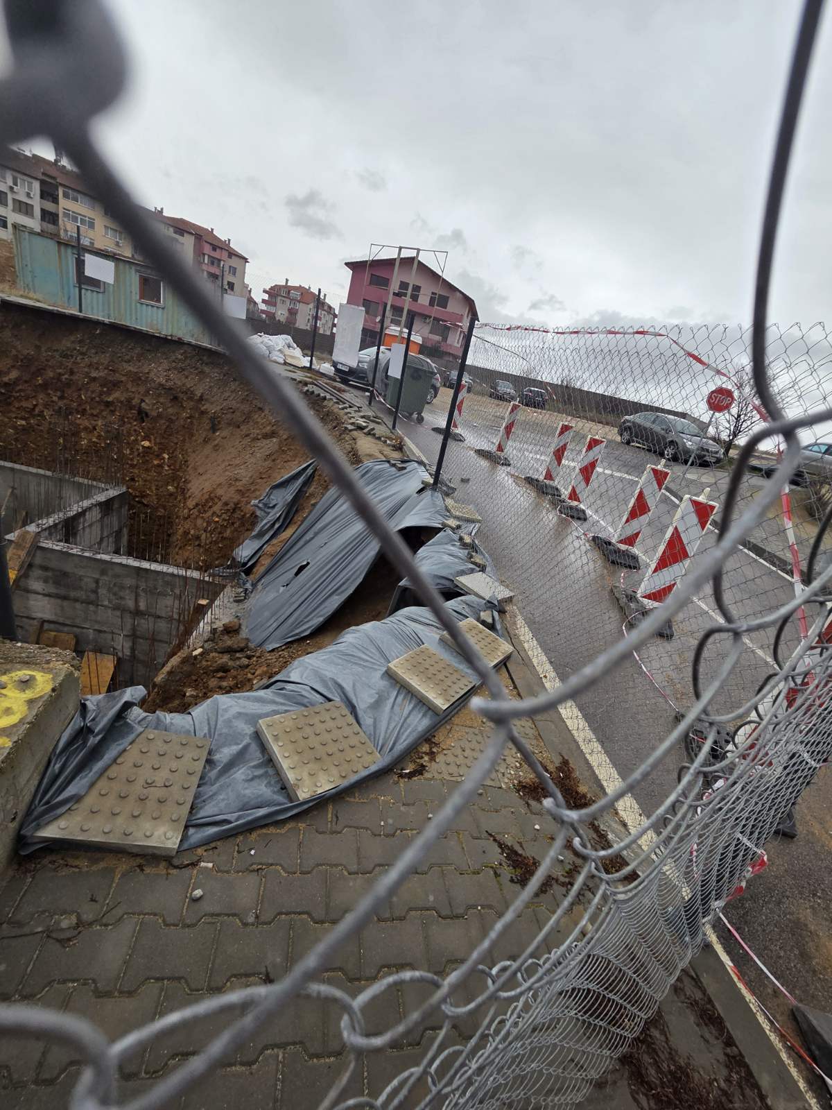 Забелязах подкопаване на част от асфалта в началото на ул.Листопад при строителни дейности на новострояща се сграда.Вижда се на снимките под найлона.